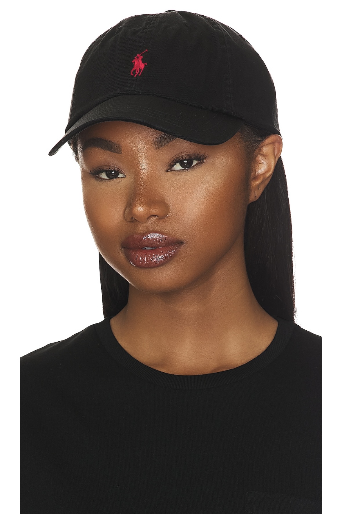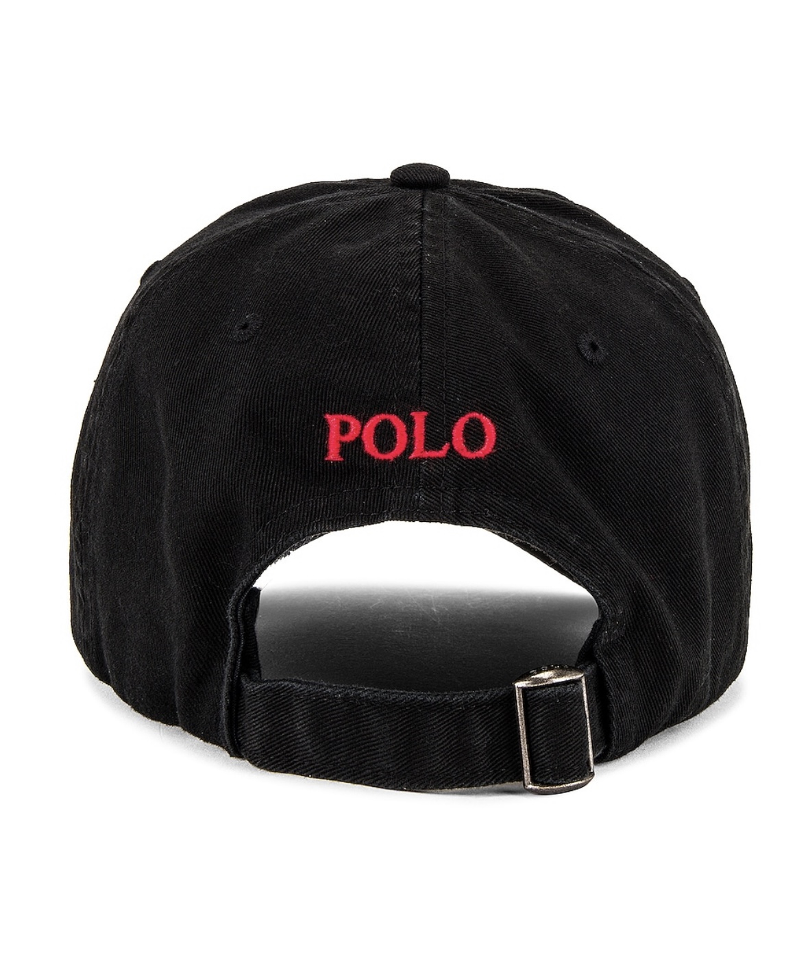 正面繡有標誌性 Pony 小馬圖案,背面配有「Polo」刺繡字樣和搭扣式帽帶