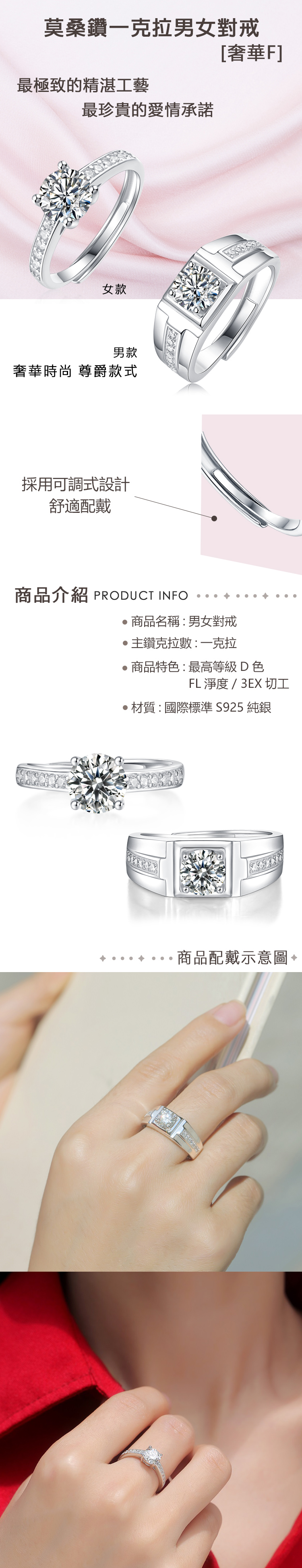 | 商品內容 | 名稱:奢華F《莫桑鑽一克拉男女對戒》