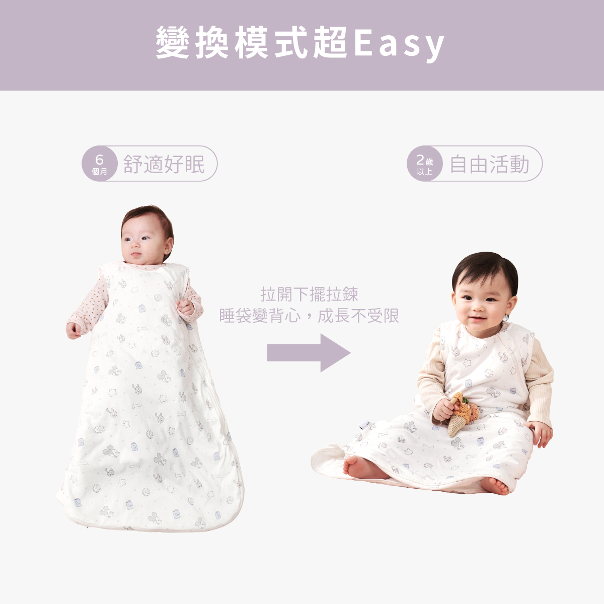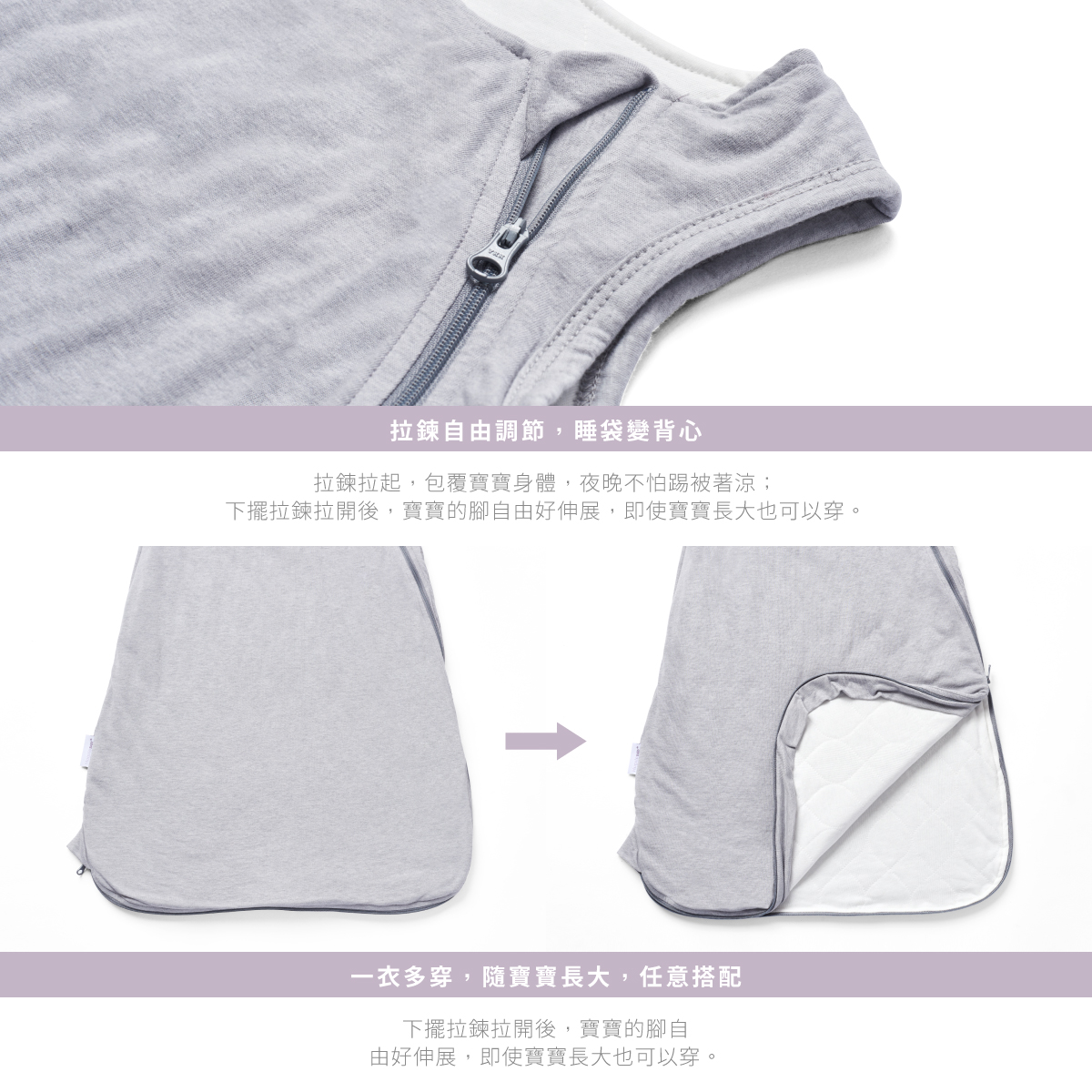 2.睡袋變背心,自由調節寶寶成長空間