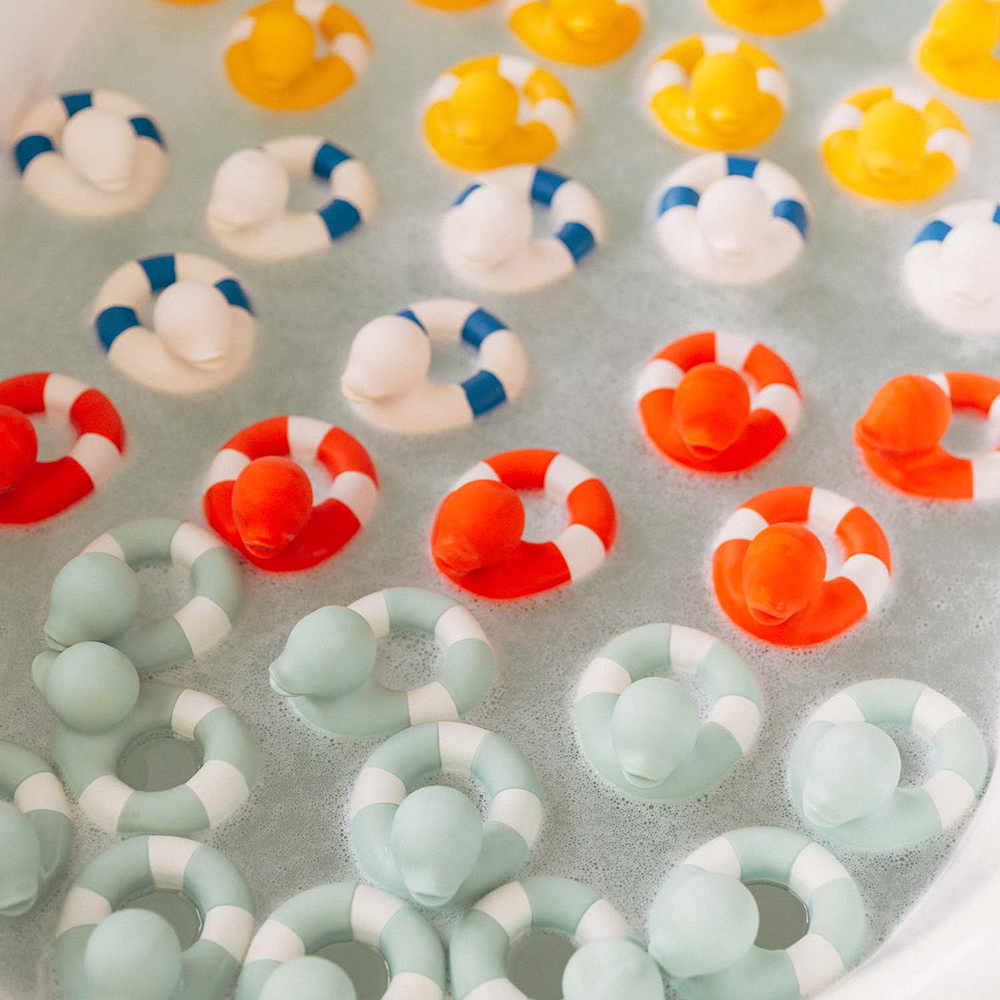 Oli&Carol 最新推出的水上玩具概念,結合咬牙器、洗澡玩具、感官遊戲與童趣擺飾於一體,為寶寶的洗澡時光增添更多樂趣。小鴨戲水玩具是 Oli&Carol 對經典橡皮鴨的全新詮釋──靈感來自救生圈設計,是孩子玩耍的完美夥伴。