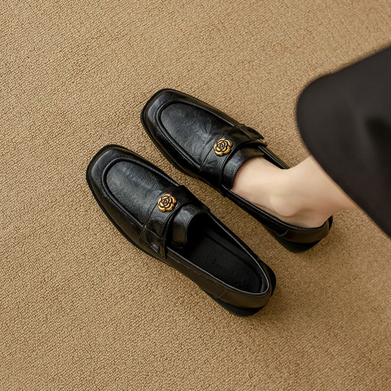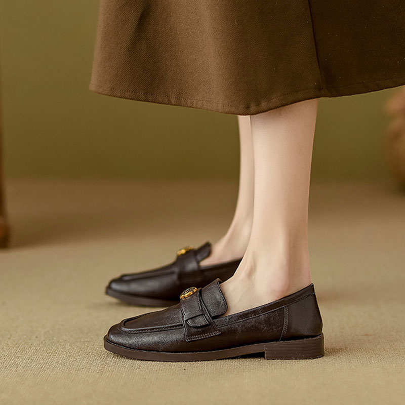 名稱:🆕新品上架💖【梨花瑪雅】🎠英倫復古玫瑰金釦樂福豆豆平底皮鞋(2色)閨蜜禮物,寵愛自己貨號:2025091726
