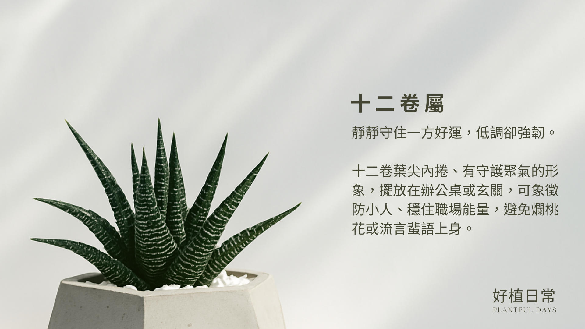 十二卷屬Haworthia spp.|百合科 Asphodelaceae∴ 別名:玉露、壽、萬象(依品種不同)∴ 特性:多肉植物,體型小巧,葉片厚實飽滿∴ 喜好環境:半日照或明亮散射光,適溫 18~28°C,喜乾怕濕、澆水不宜過多教育不是一瞬的花火,是每日灌溉的細水長流。謝謝您的堅持與溫柔,陪我們走過成長。