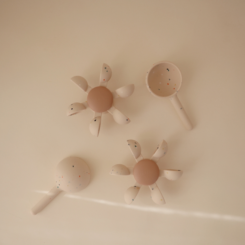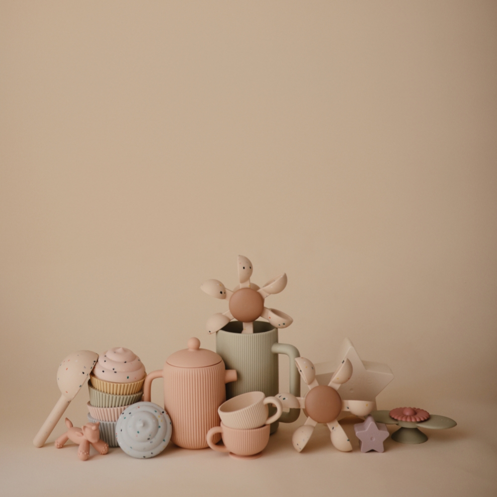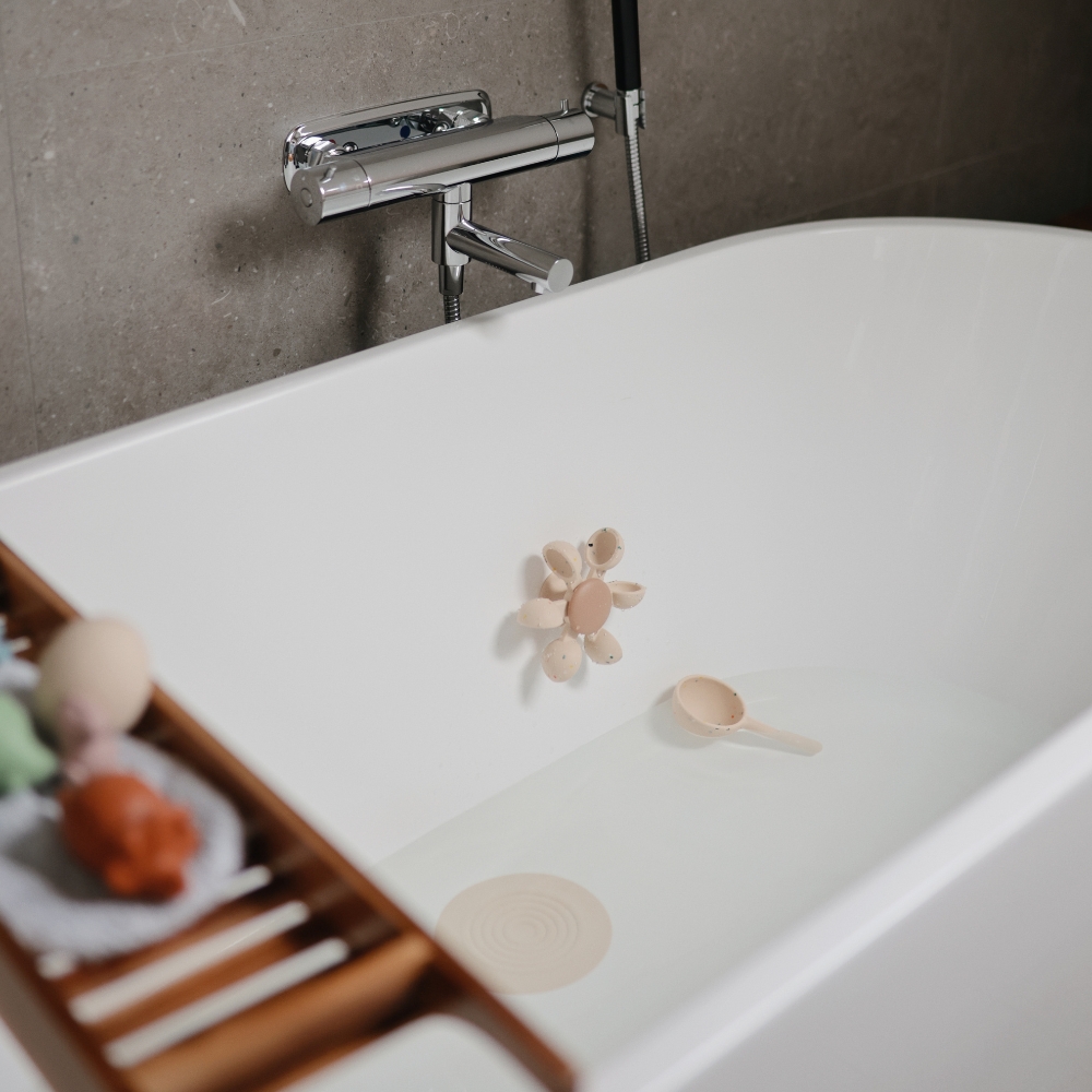 讓洗澡時間更有趣吧!mushie 轉轉洗澡玩具為寶寶帶來互動式的戲水體驗。這款玩具可吸附在浴缸側邊,搭配可旋轉的小杯子,當倒入水時,小杯子便會開始轉動。孩子們可使用湯匙舀水、倒水,開啟轉動的奇幻時刻。玩具採用柔軟且耐用的矽膠製成,易於清洗,是陪伴寶寶盡情玩水的完美夥伴。