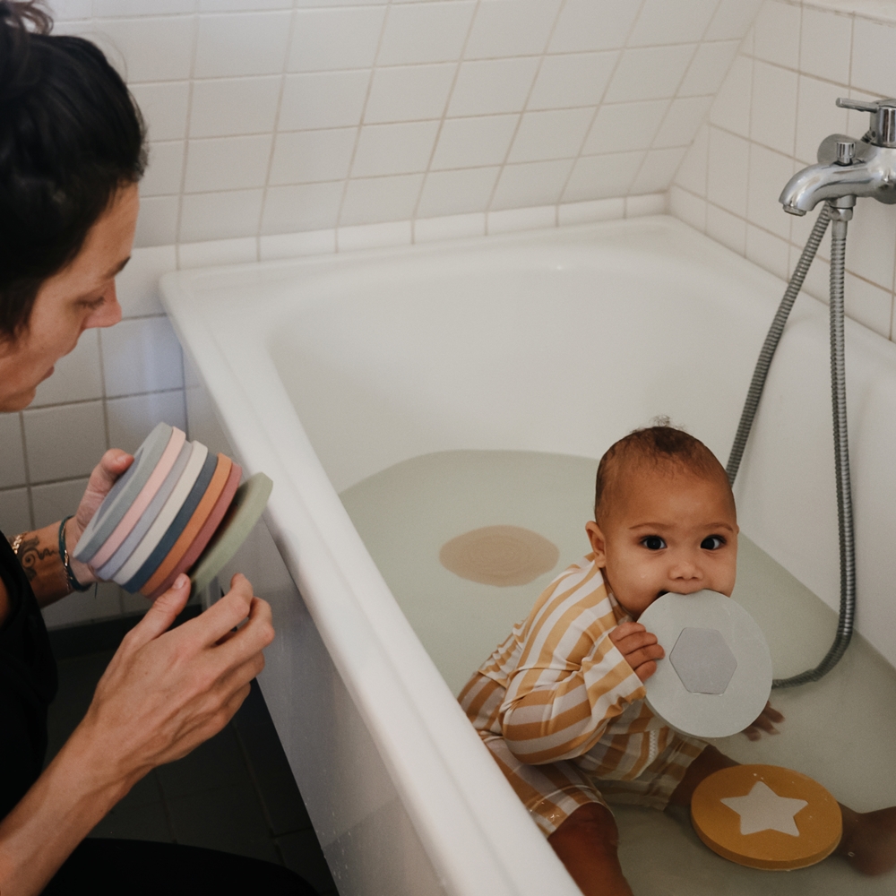 • 拼圖片由EVA泡棉製成,輕盈柔軟,可輕鬆漂浮於水面,也能黏貼在浴缸或浴室牆面上,為不同年齡層的孩子創造出充滿趣味的沐浴時光。• 10個圓形底板與10個幾何圖形拼塊,幫助孩子學習形狀與顏色辨識,在將圖形準確放入對應孔位的過程中,也能訓練手眼協調與精細動作能力。• 貼心附贈網狀收納袋,方便集中收納,保持浴室整潔!