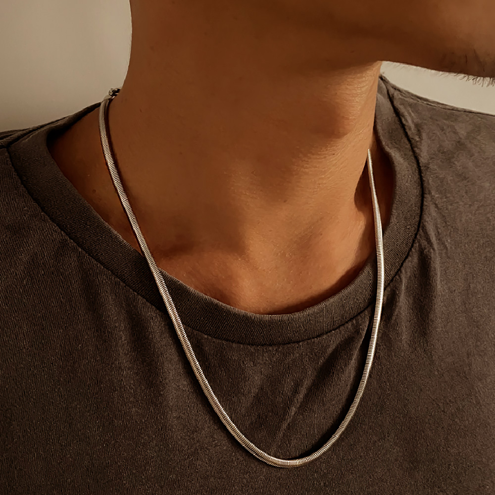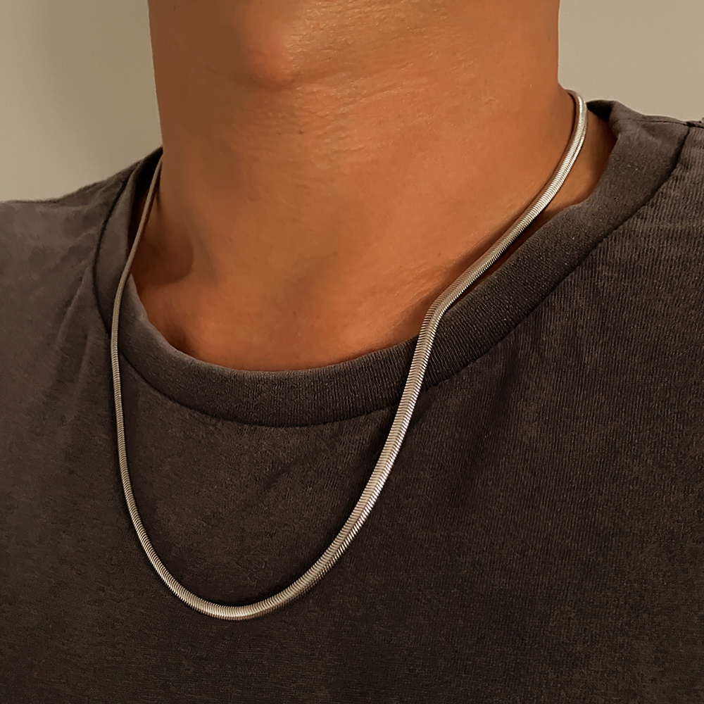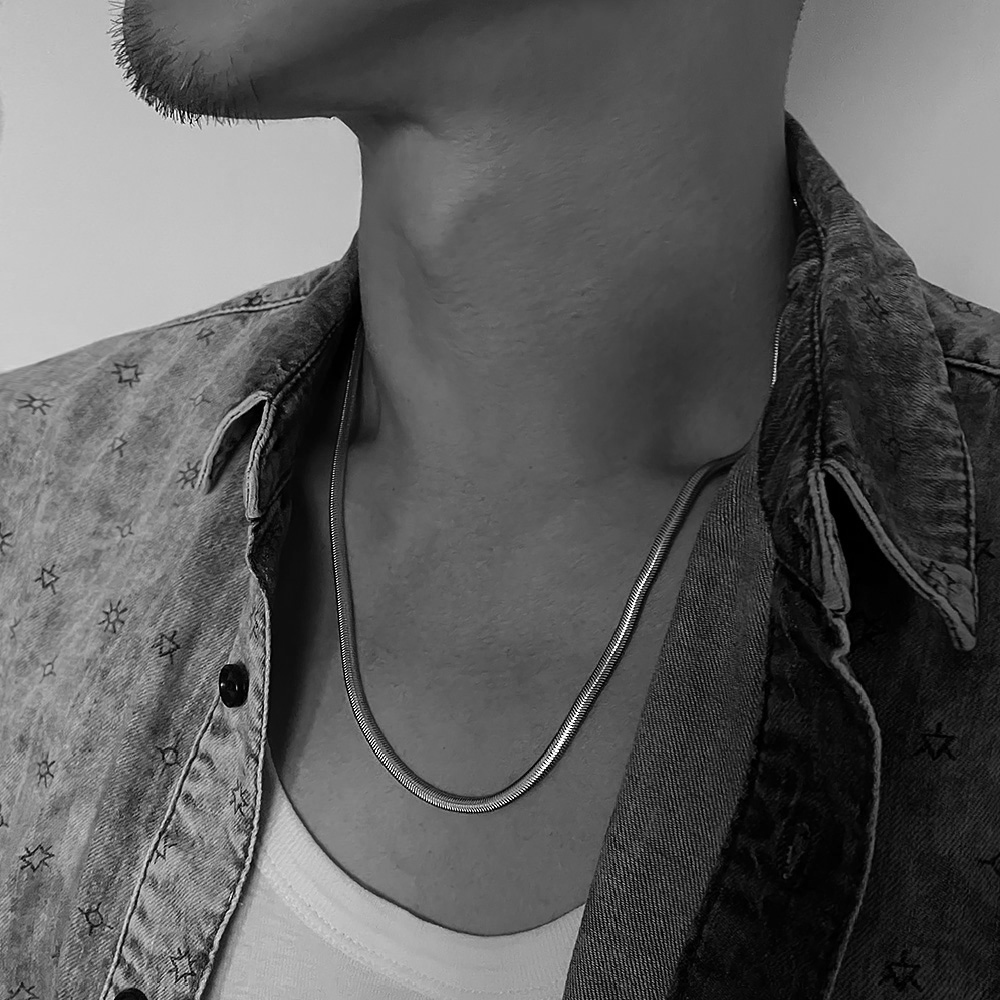 ・名稱:Cedric鈦鋼銀色扁蛇鍊中性男項鍊・功能:禮盒/禮品・項鍊尺寸:寬4mm/全長約60cm