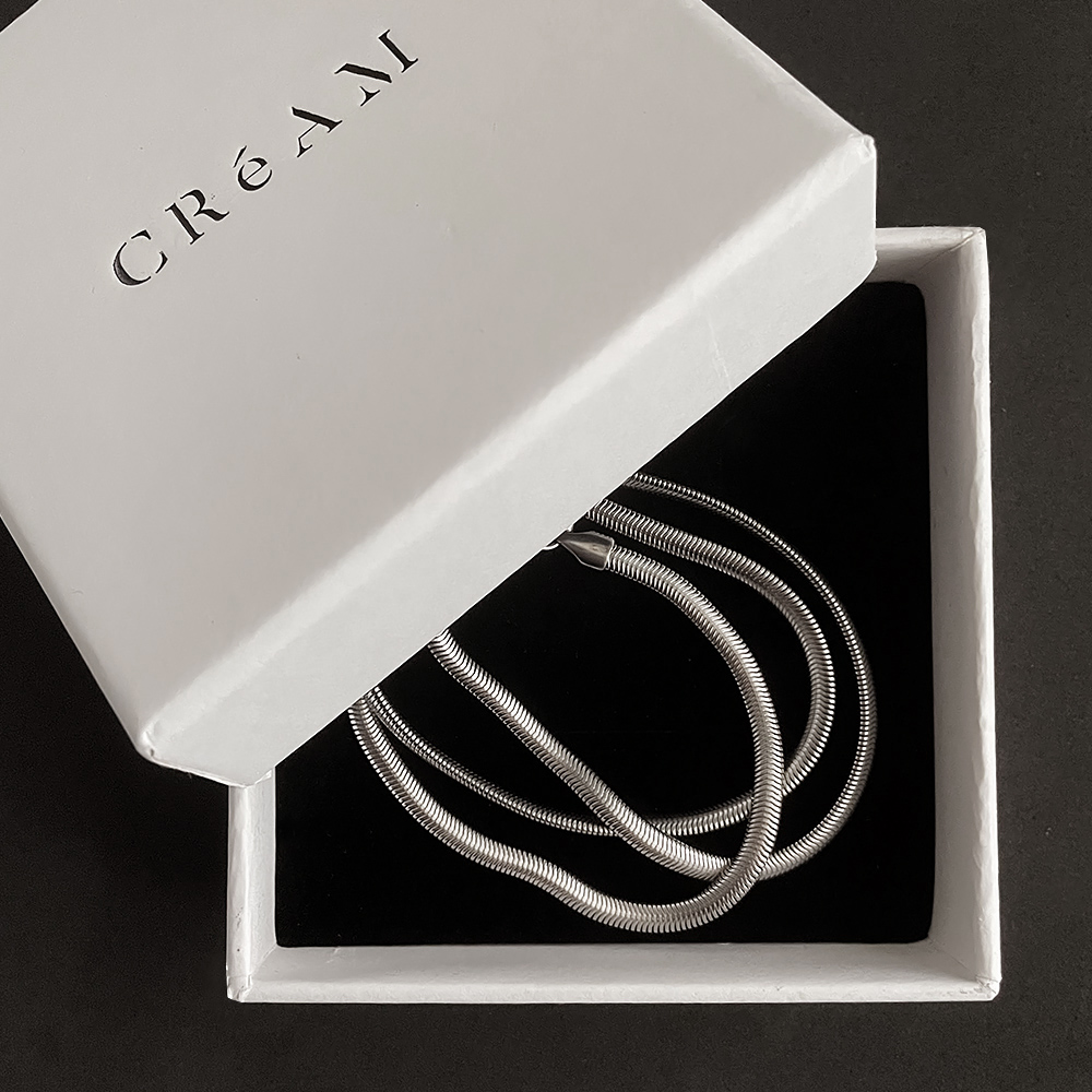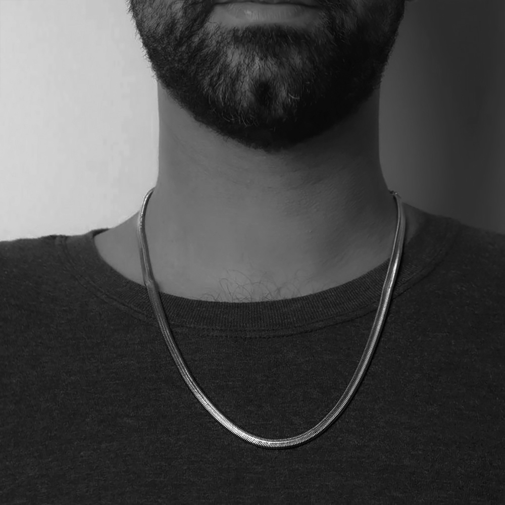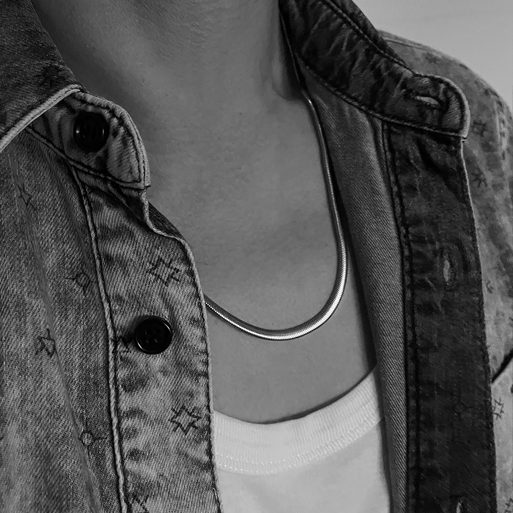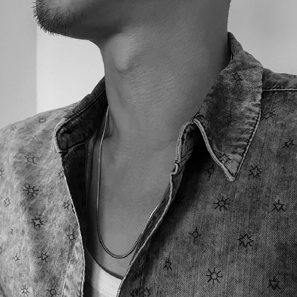 ・名稱:Cedric鈦鋼銀色扁蛇鍊中性男項鍊・功能:禮盒/禮品・項鍊尺寸:寬4mm/全長約60cm