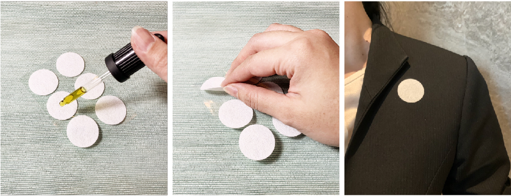 此款香氛貼片尺寸: 3X3cm,適用黏貼於衣領處、嬰兒推車或是鞋櫃上。