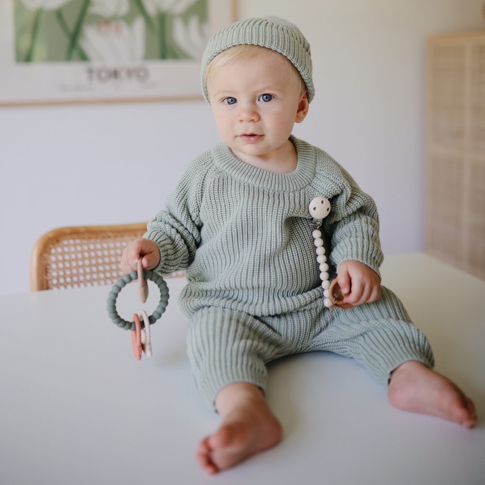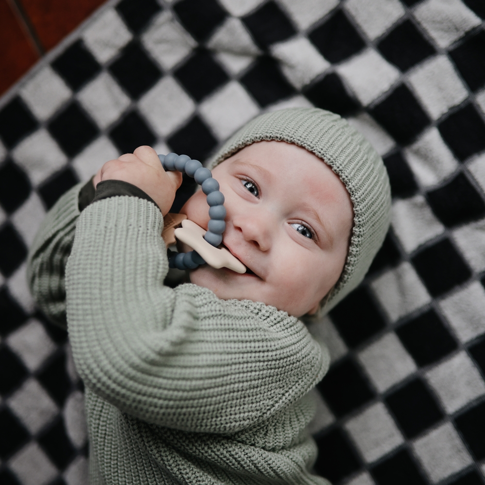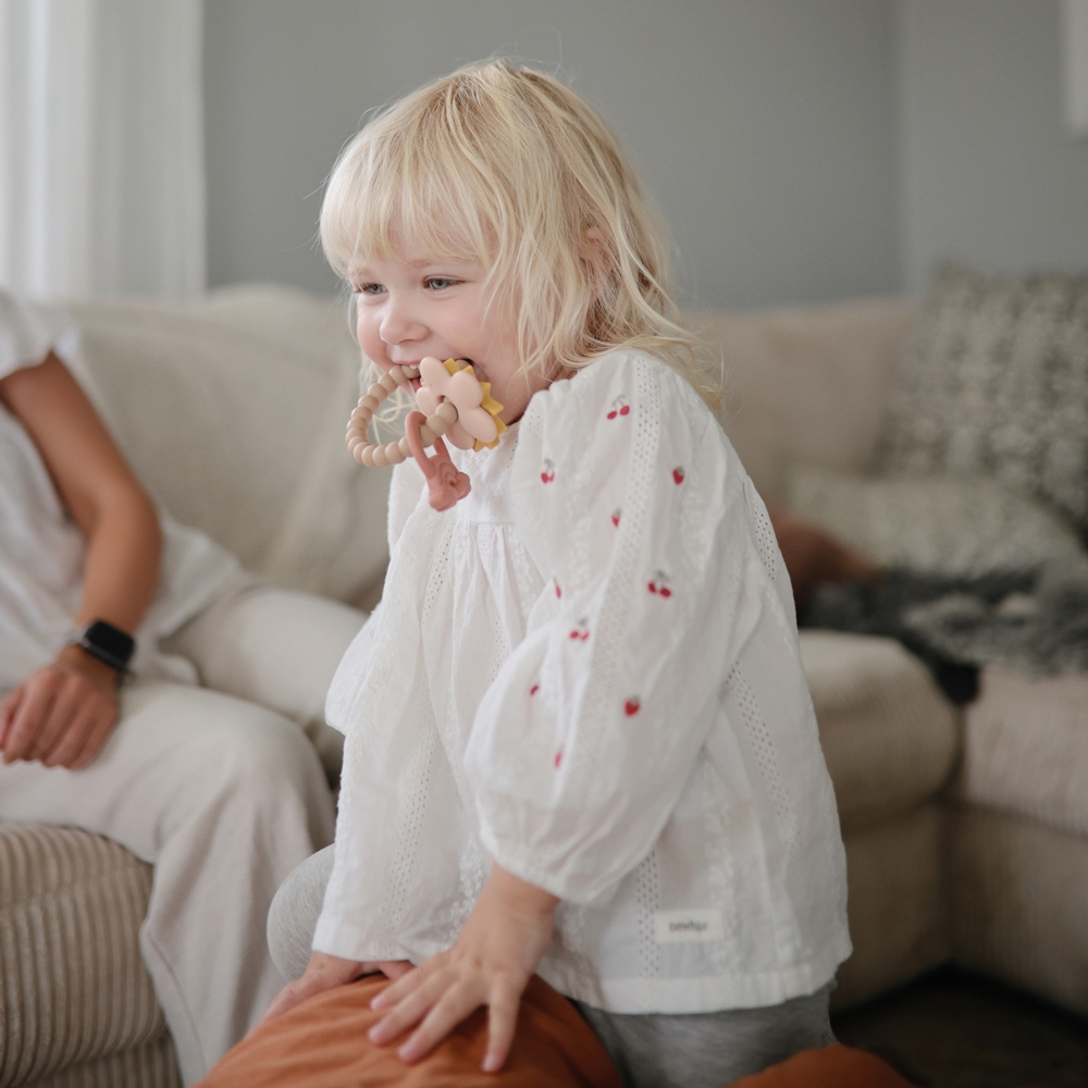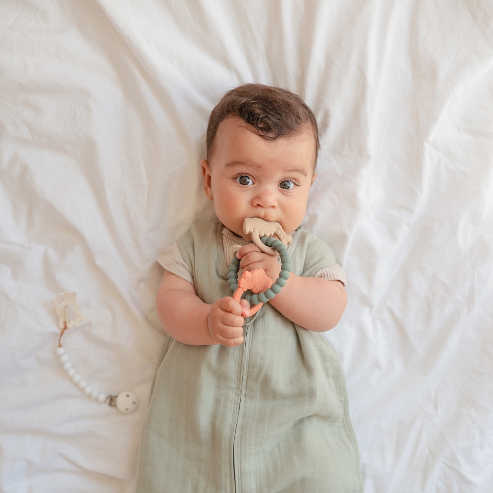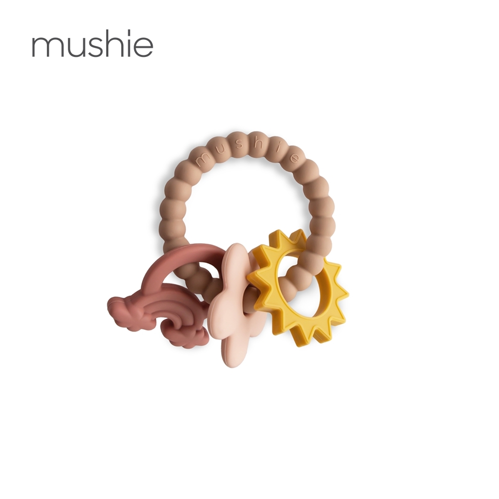 • 採用 100% 食品級矽膠製成,安全無毒,讓寶寶安心啃咬,爸媽也放心!• 玩具環固齒器設計,能溫柔舒緩寶寶長牙時的不適。• 太陽、彩虹和雛菊造型的三款吊飾,能吸引寶寶的小手與目光,刺激觸覺與視覺發展。