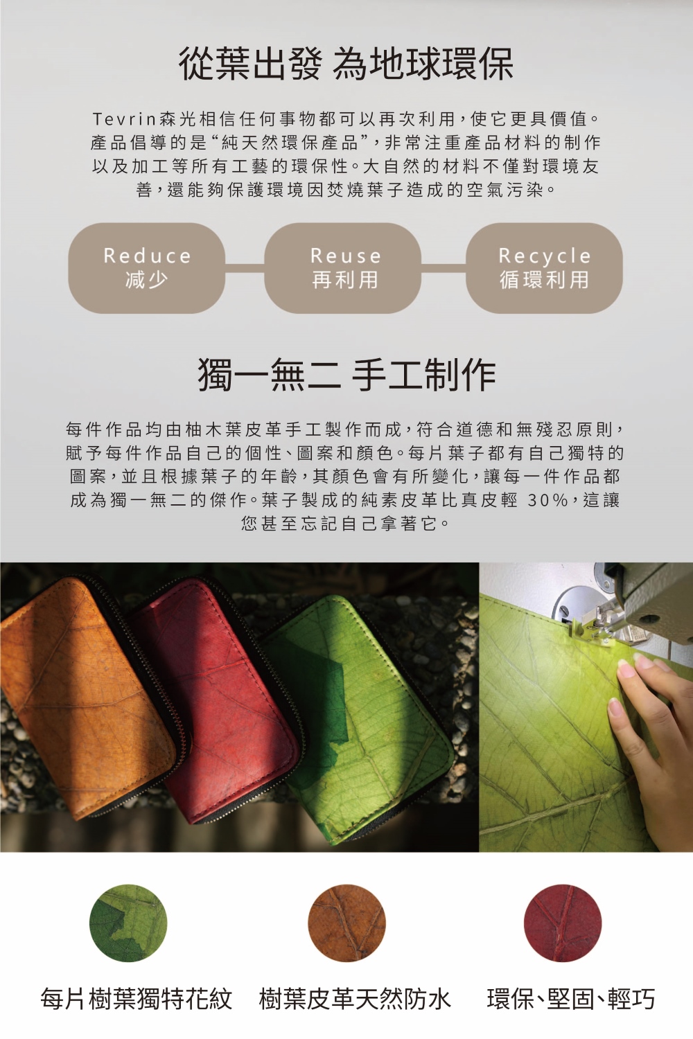 以自然落葉為靈感,將柚木葉片化為可再生的皮革素材。