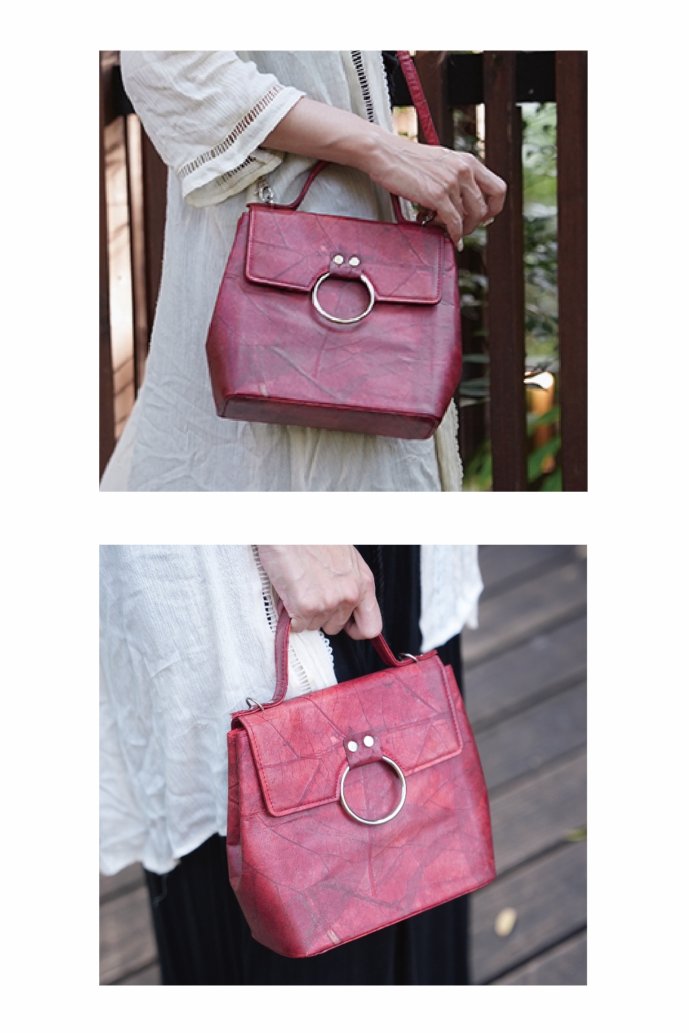 以自然落葉為靈感,將柚木葉片化為可再生的皮革素材。
