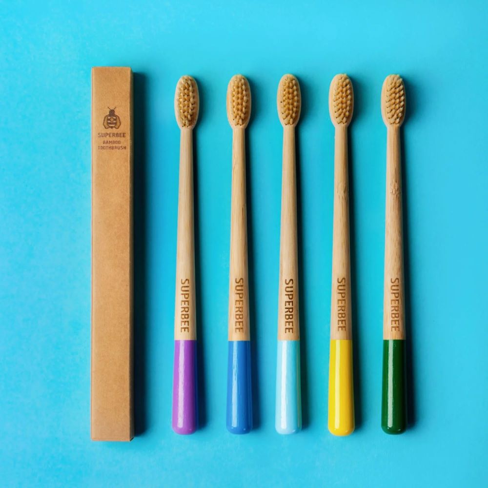 5支明亮歡快的彩色竹牙刷