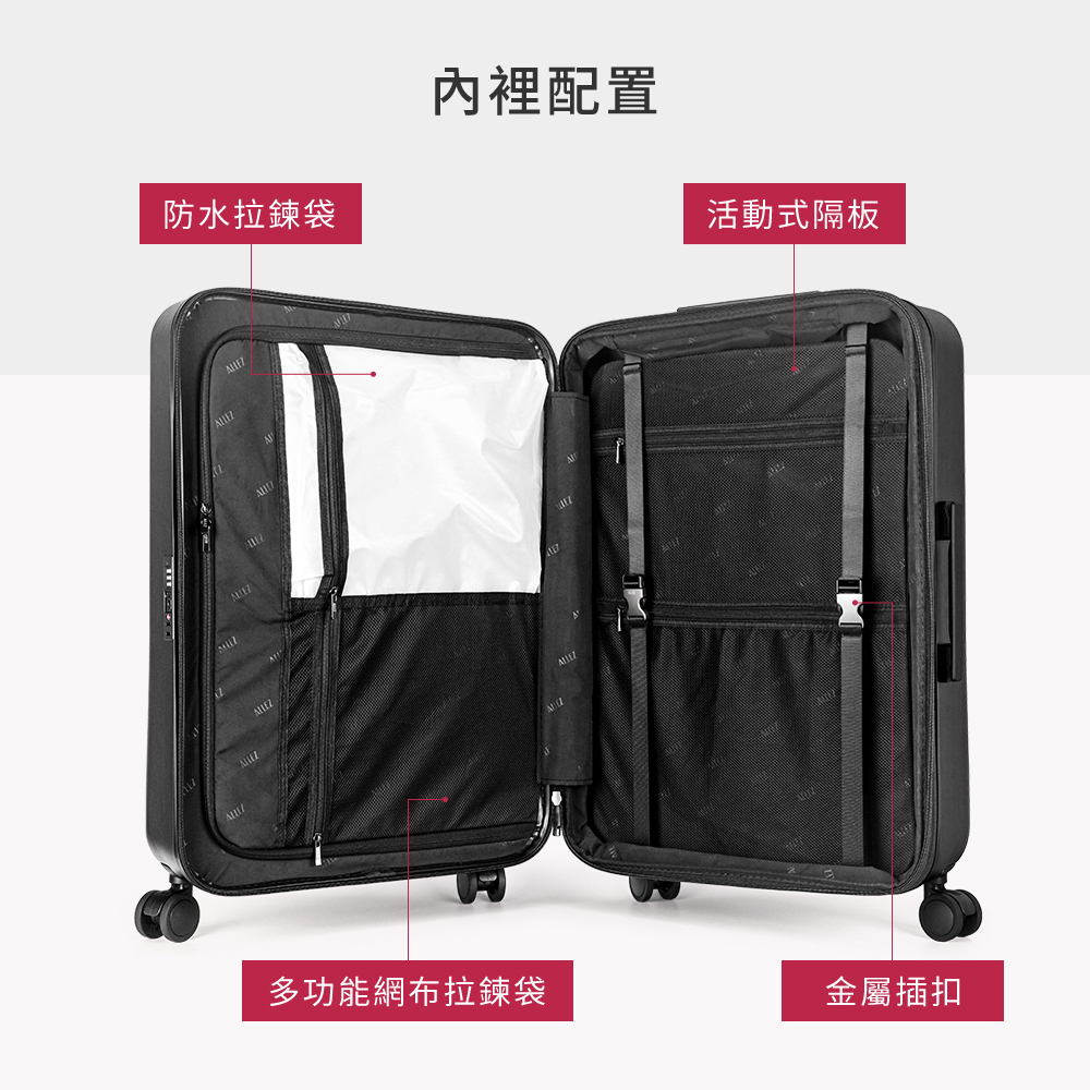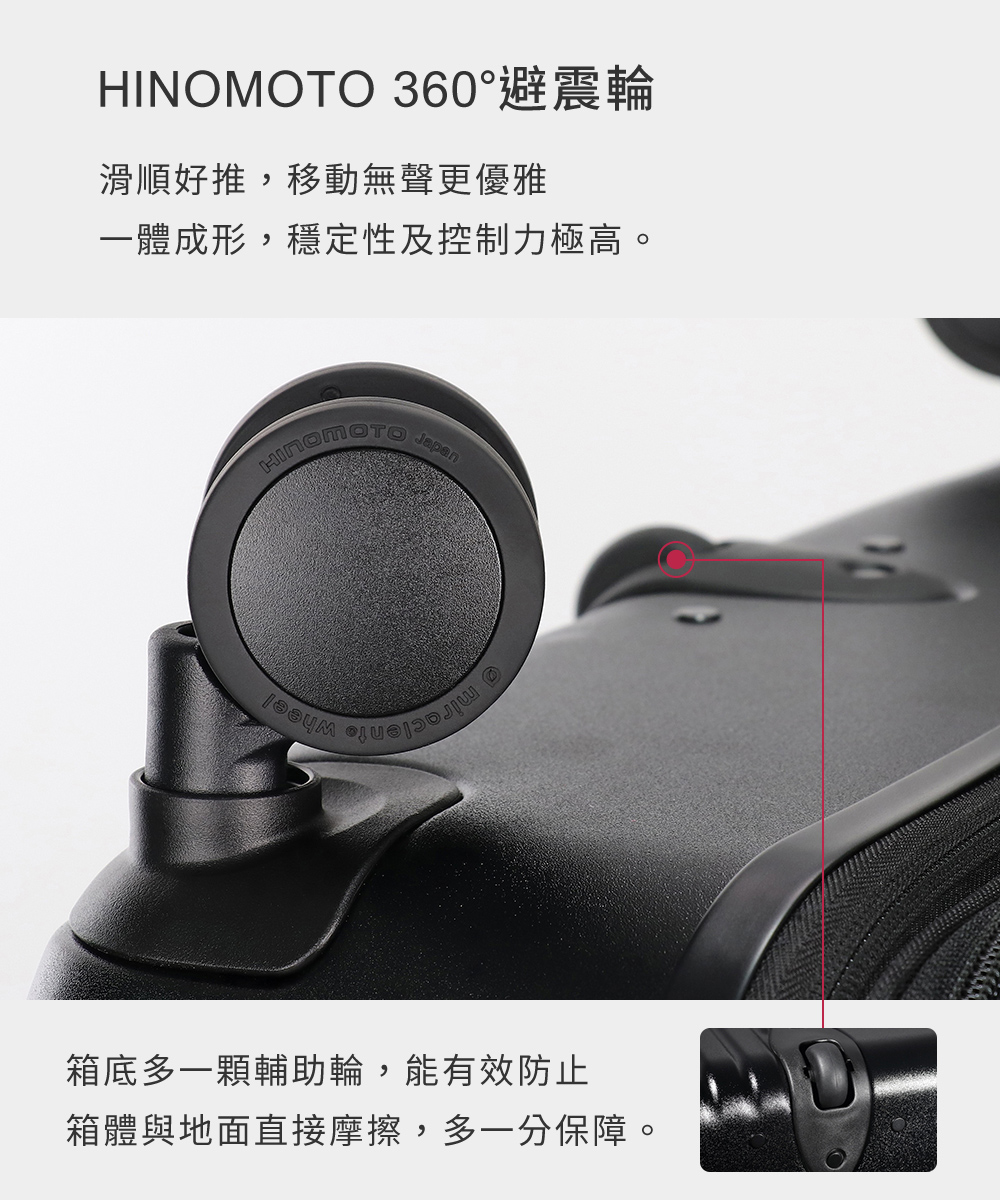 ✔日本HINOMOTO飛機輪,靜音超滑順 ✔德國拜耳純PC,輕量耐刮耐磨損✔雙層專利拉鍊,防盜防爆效果加倍✔擴充加大設計,增加30%容量