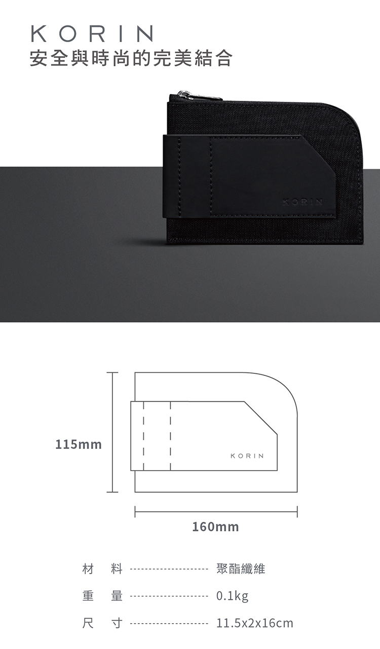 【產品規格】包裝內容物:KORIN RFID防盜拷 星雲錢包*1材 質 :聚酯纖維重 量 :100g商品尺寸 :11.5*2*16cm產 地 :中國大陸
