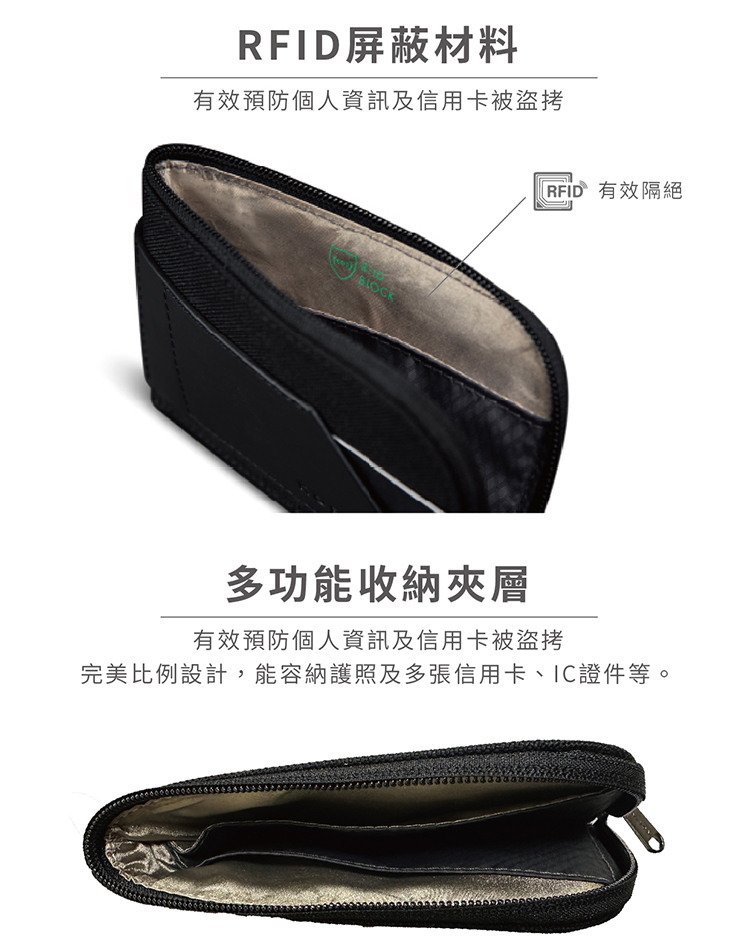 ◆ RFID防盜拷內襯設計 安全防護個人晶片資訊◆ 質感設計 合理分區 使用流暢◆ 外側快取收納夾層 自由收納交通卡/門禁卡等◆ 安全與時尚的完美結合