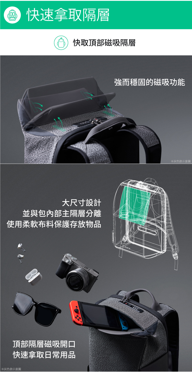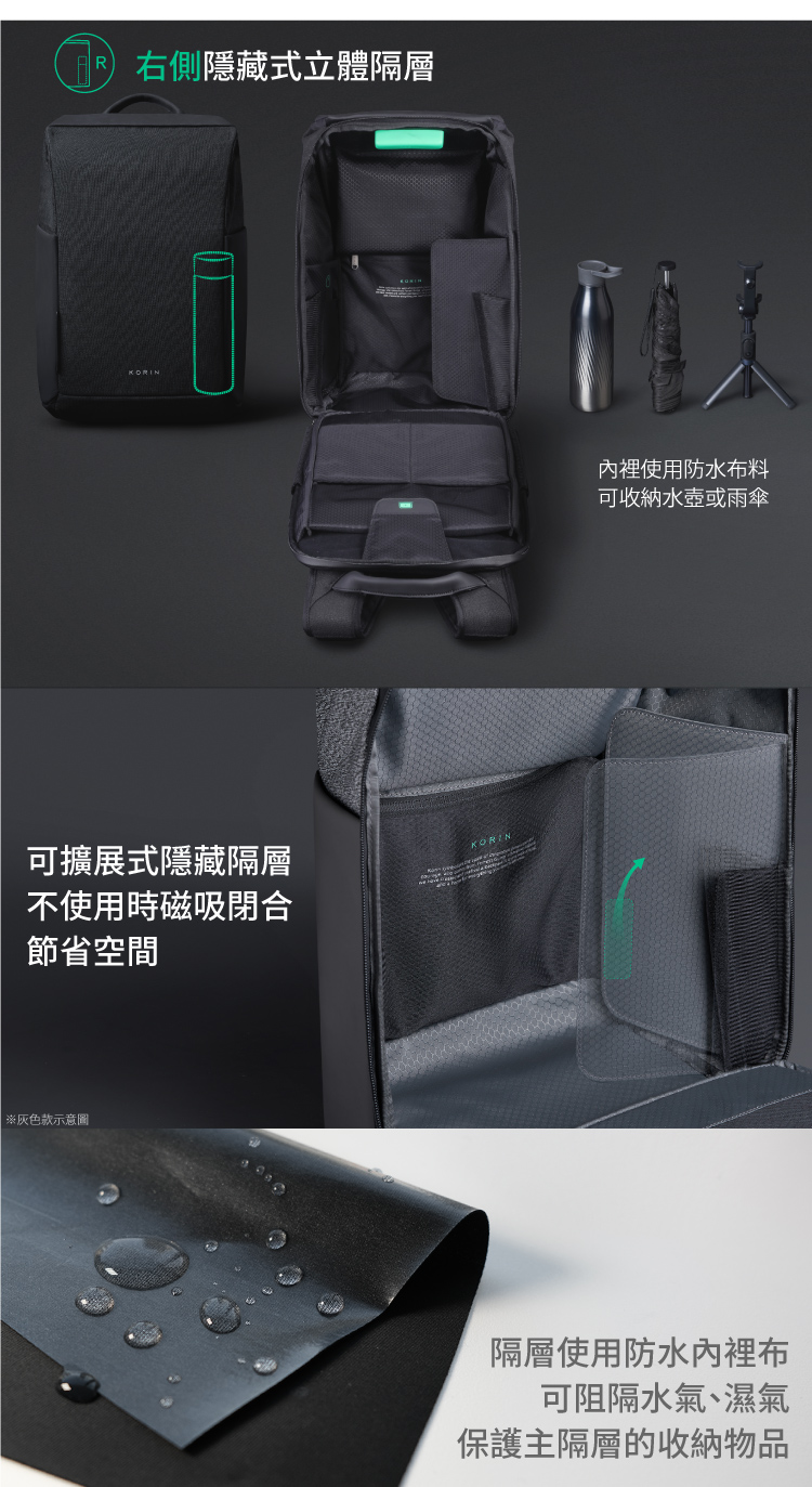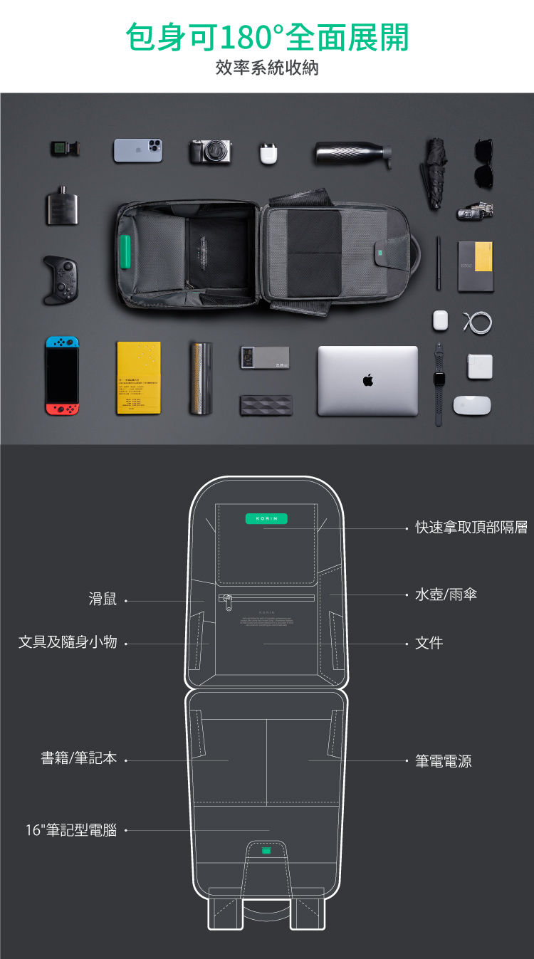 ◆ 極速快取隔層 強力磁吸開口◆ 頂級強大防割表面材質◆ 密碼鎖 伸縮鋼索 RFID防盜拷 多重防盜◆ 側邊隱藏式水壺收納◆ 180度超展開收納 可容納16吋筆電