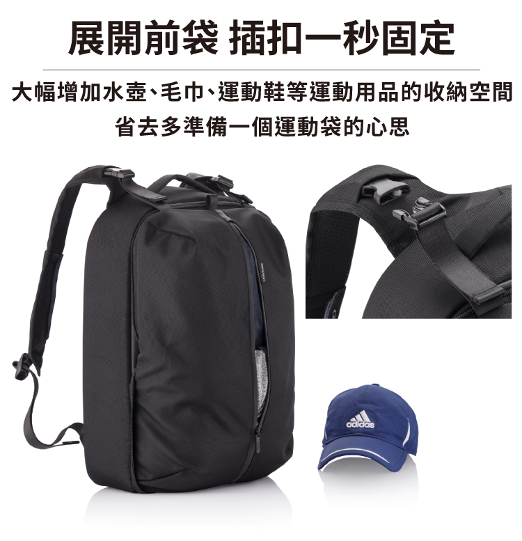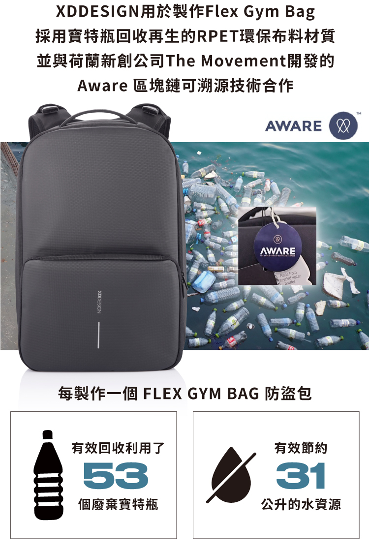 【產品規格】包裝內容:FLEX GYM BAG 運動/商務防盜後背包*1材 質:聚氨酯、再生聚酯商品尺寸:46 x 30 x 14 cm重 量:1060g容 量:16~24L產 地:中國
