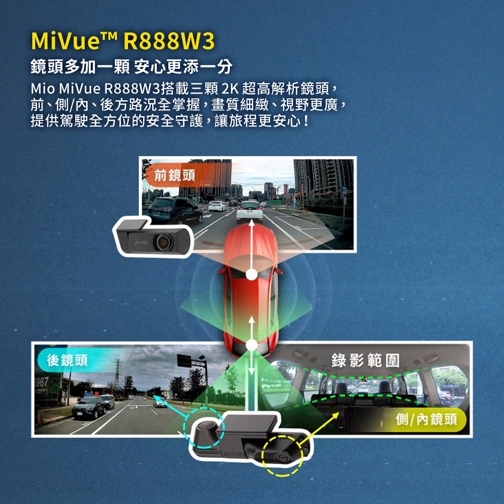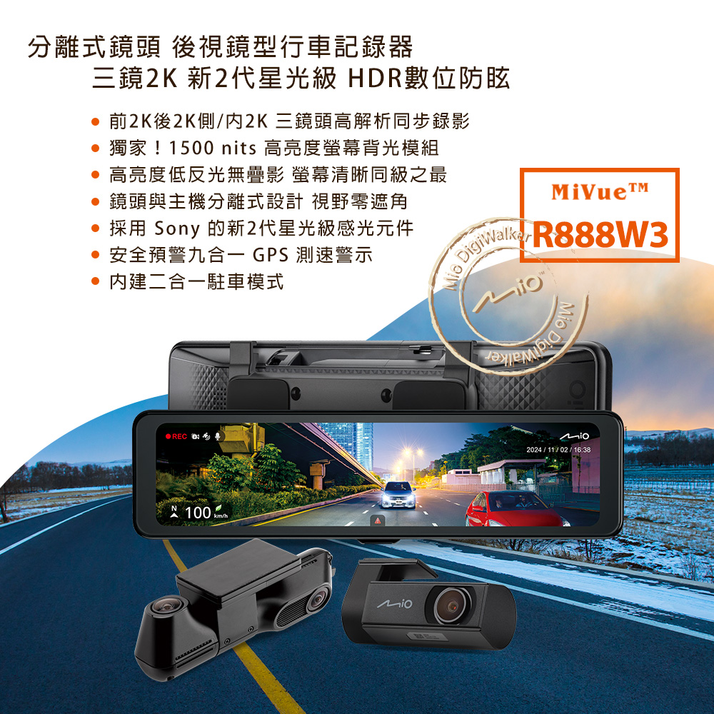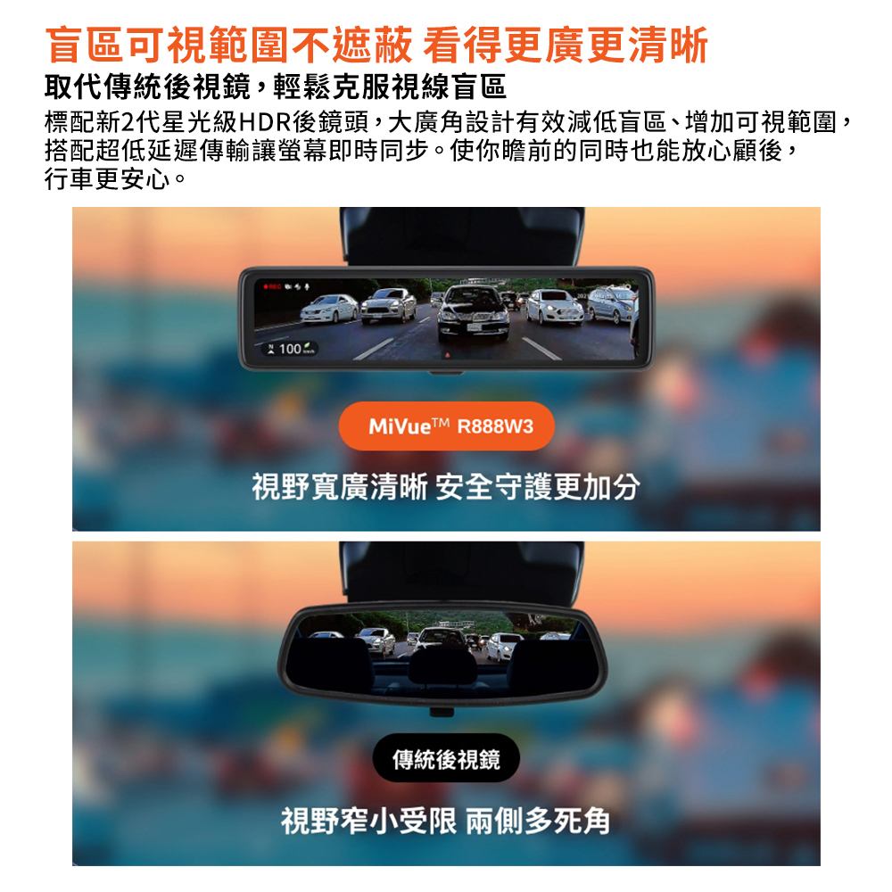 【Mio】MiVue R888W3分離式鏡頭 後視鏡型行車記錄器 三鏡2K 新2代星光級 HDR數位防眩(送-128G卡)(含到府安裝)行車紀錄器