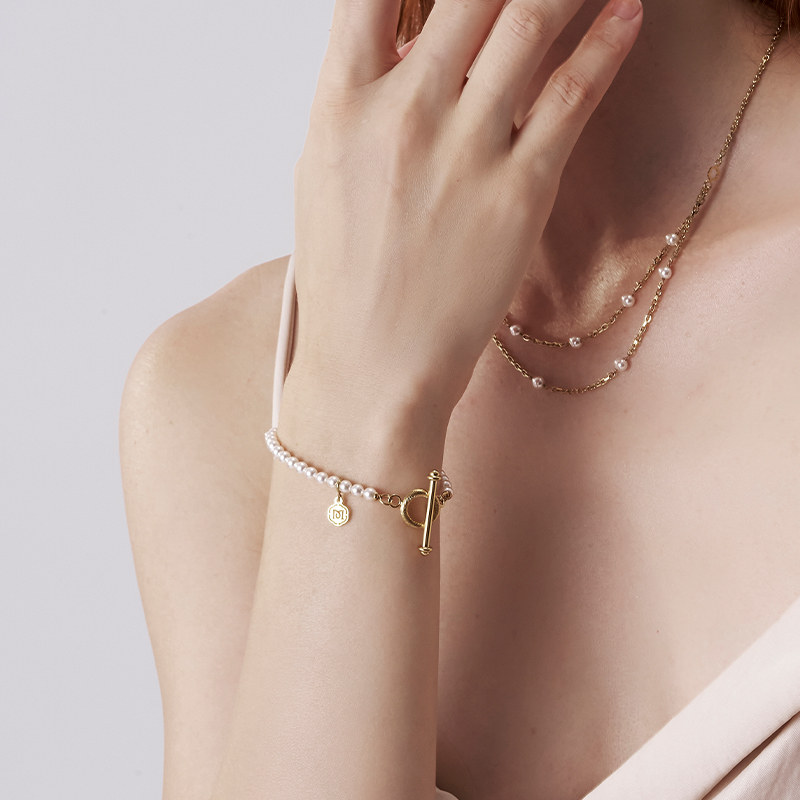 以融入摩登設計感的 Only ME 手鍊,重新演繹小巧的 4mm 珍珠串鍊