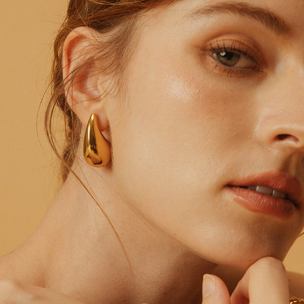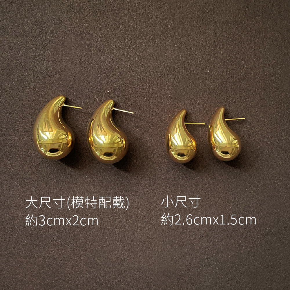 ・名稱:Lana水滴造型不鏽鋼空心鍍金色銀色女耳環・顏色:銀色/金色・材質:不鏽鋼・功能:耳環/禮品・尺寸:大尺寸約3x2cm/小尺寸約2.6x1.5cm