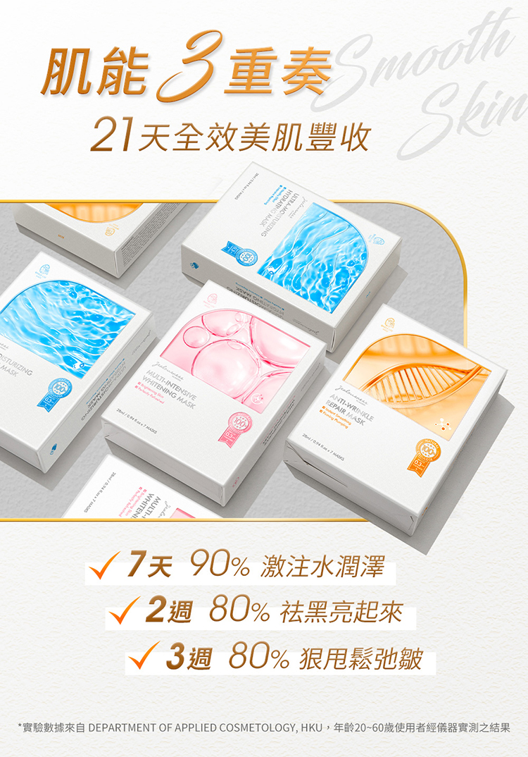 極水潤保濕面膜(2入組)+全修護緊緻面膜(2入組)+激光美白面膜(2入組)+黃金蠟菊修護精華乳10ml