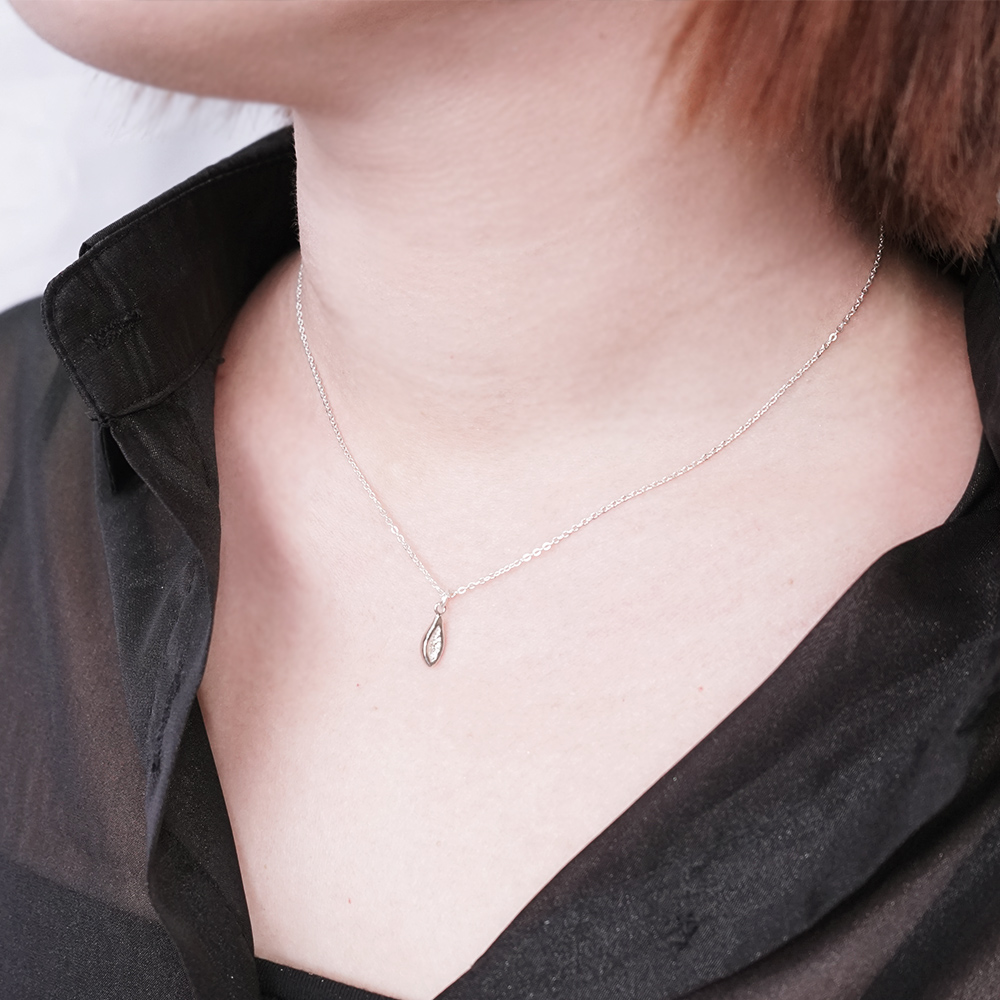 銀墜與項鍊皆為925純銀墜子約4.5mm寬X10mm高項鍊長16英吋,女性配戴時約落在鎖骨下方