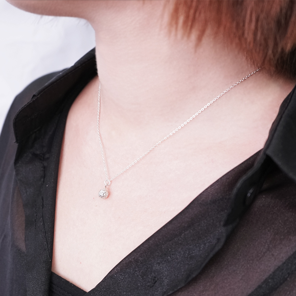 銀墜與項鍊皆為925純銀墜子約6.5mm寬X9.5mm高項鍊長16英吋,女性配戴時約落在鎖骨下方