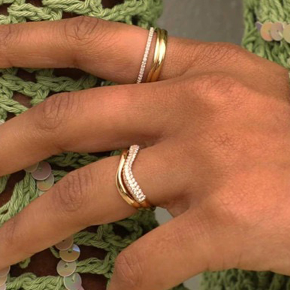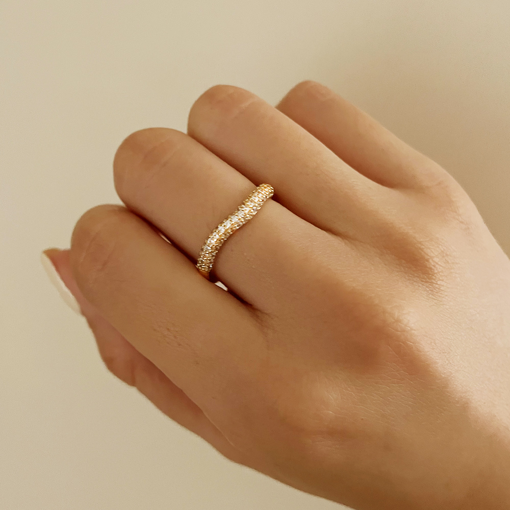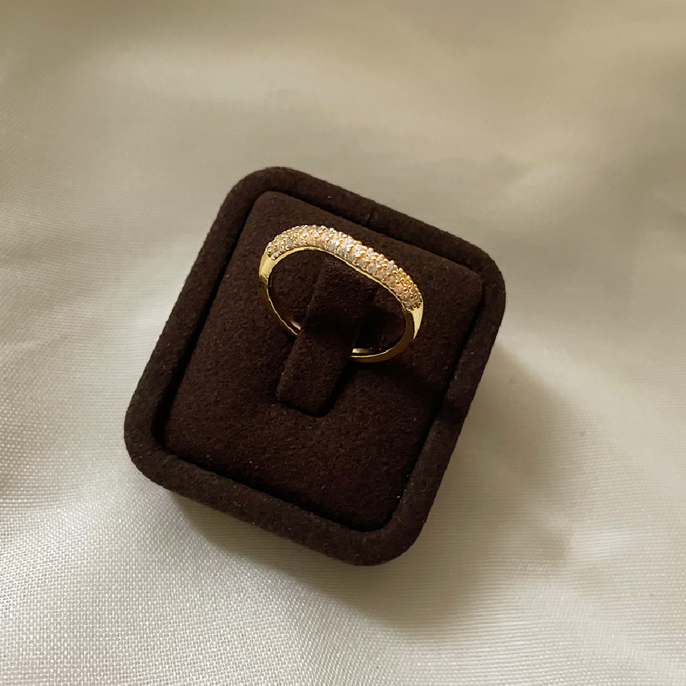 ・名稱:Unique 925純銀波浪不規則金屬亮鑽碎鑽金色戒指