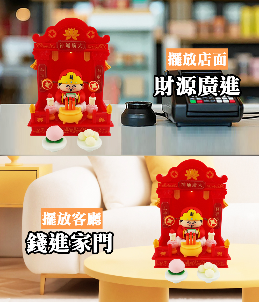 擺放在店面不僅增添生意財氣,還能帶來滿滿療癒感,提升好心情的必備小物! 生意清淡、財運卡關時,不妨動動手調整一下供品位置,小小互動就能轉換心境。若是遇到周轉不靈、財運低迷,甚至是投資失利,只要點亮佛龕神光,就能立刻召喚財神加持,強化財運、扭轉頹勢,好運富貴重新回到你身邊!