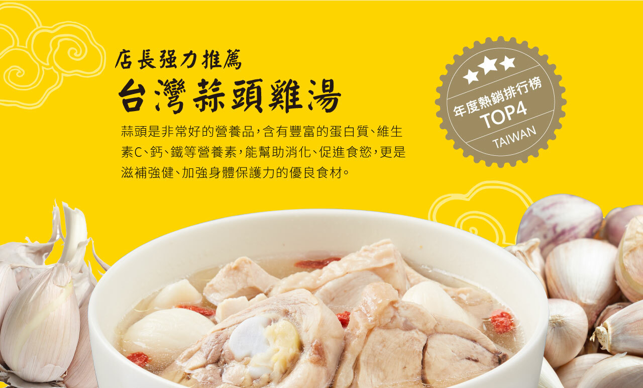 1.商品組合/規格:【台灣G湯】經典嫩雞腿湯品(550g/包) x3包組2.商品品名:【台灣G湯】經典嫩雞腿湯品(550g/包) x3包組-蒜頭雞/九尾雞/人蔘雞3.商品重(容)量:550g±15g(固形物180g)/包4.內容物成分◆台灣蒜頭雞:水、嫩雞腿、蒜頭、鹽、味精◆養生九尾雞:水、嫩雞腿、九尾草、鹽、味精◆養生人蔘雞:水、嫩雞腿、人蔘、鹽、味精5.原產地(國):台灣6.保存期限:冷凍 18個月(實際依商品包裝標示)7.製造廠商或國內負責廠商名稱:台雞食品有限公司/品臻國際行銷有限公司8.製造廠商或國內負責廠商地址:台北市中山區民生東路一段43號7樓9.製造廠商或國內負責廠商電話:02-8861-520810.食品業者登錄字號:A-127757268-00000-211.投保產品責任險字號:富邦產物0510字第25AML0000316號