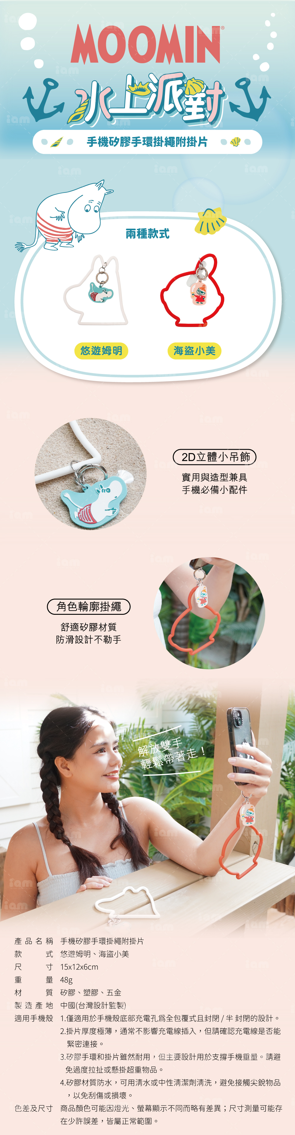 品名:手機矽膠手環掛繩附掛片款式:悠遊姆明、海盜小美尺寸:15x12x6cm重量:48g材質:矽膠、塑膠、五金