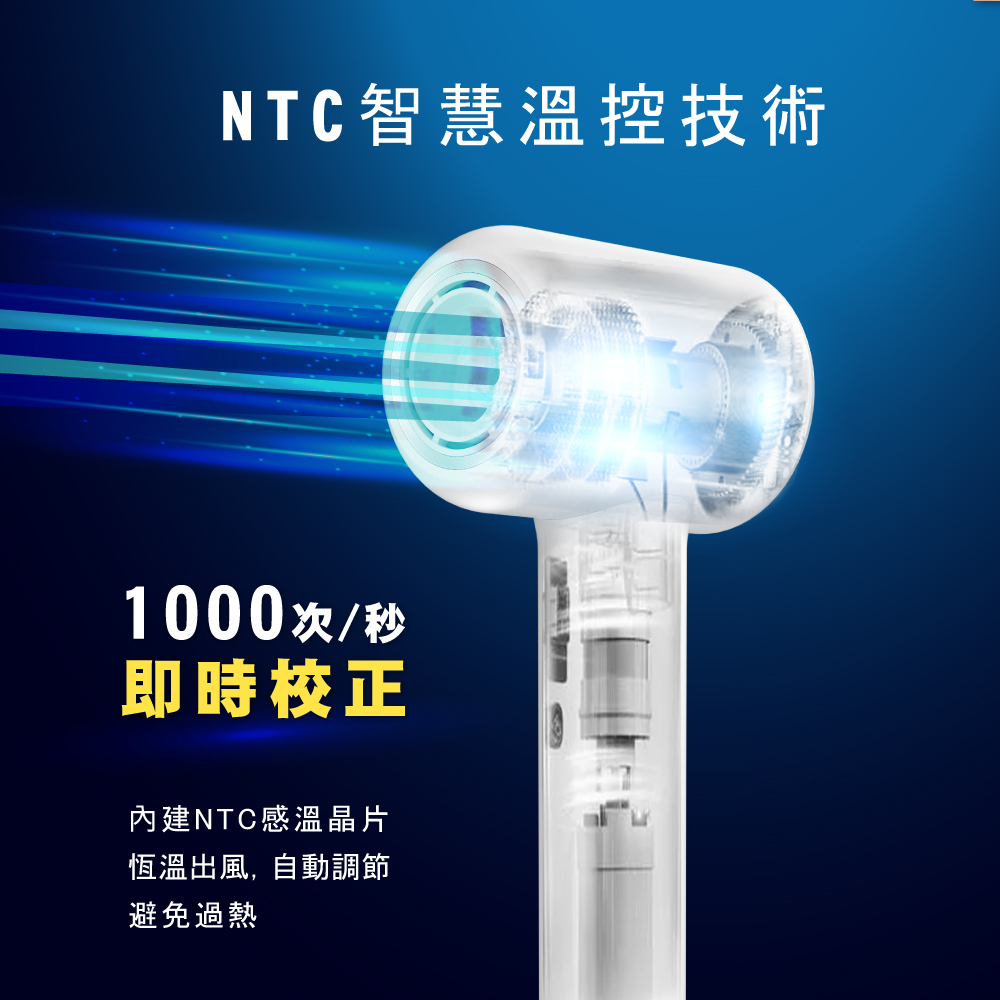 NTC智慧溫控技術,1000次/秒即時校正恆溫出風。