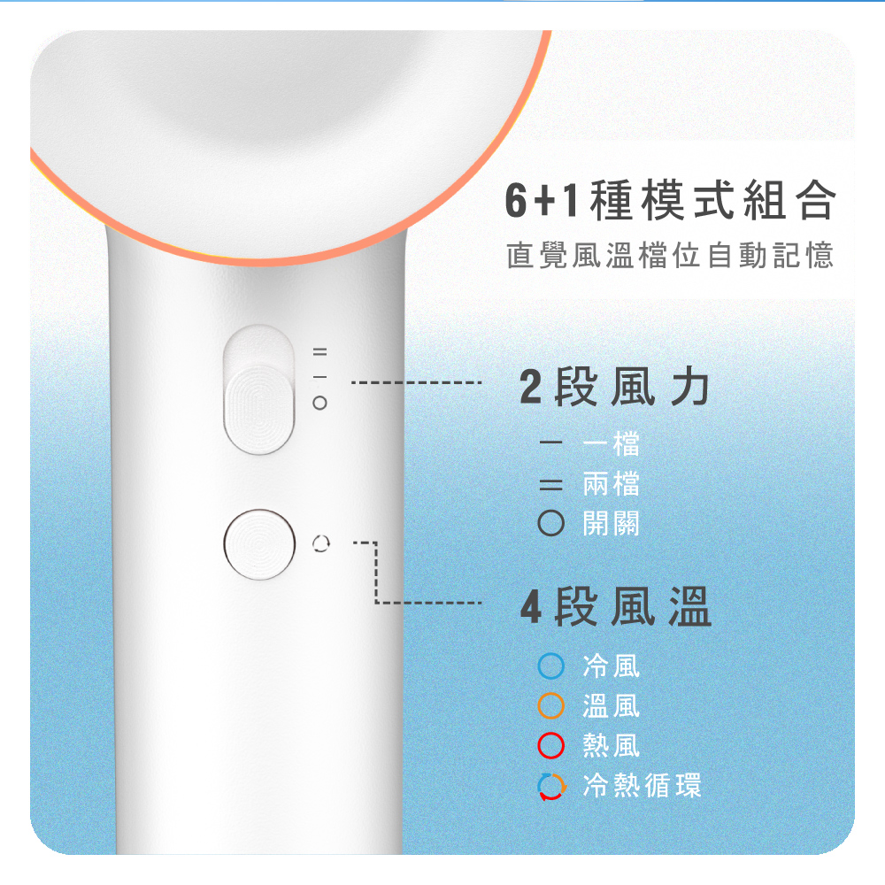 3段風溫×2段風力自動記憶,速乾、造型一次完成。