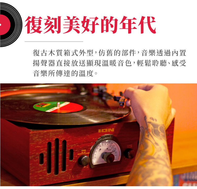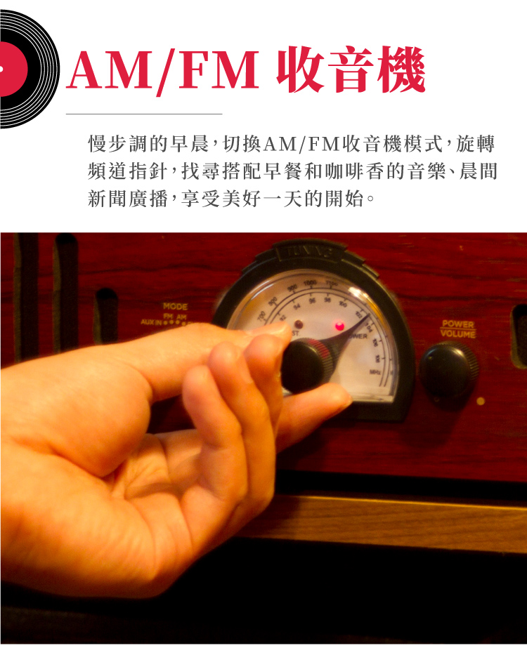 ~精選唱片珍藏組合~◆ 老派浪漫復古木箱式設計◆ 內建揚聲器 直接播放聆聽◆ 33/45/78RPM 三段轉速切換 ◆ 大孔唱片轉換器 適用7-12吋黑膠唱片◆ AM/FM廣播模式 切換頻道旋鈕指針面板 ◆ AUX IN模式 可外接手機、平板裝置播放