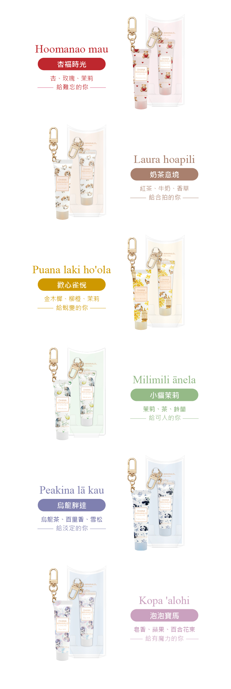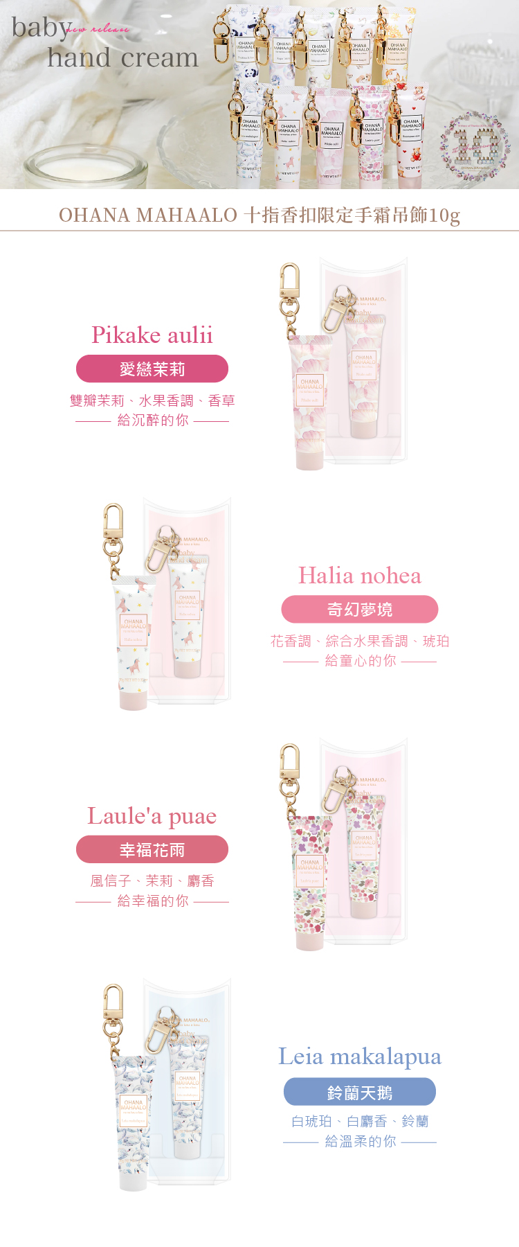 ◆商品內容 OHANA MAHAALO 十指香扣限定手霜吊飾 (10款任選) x1