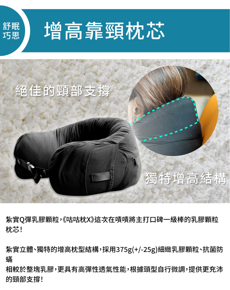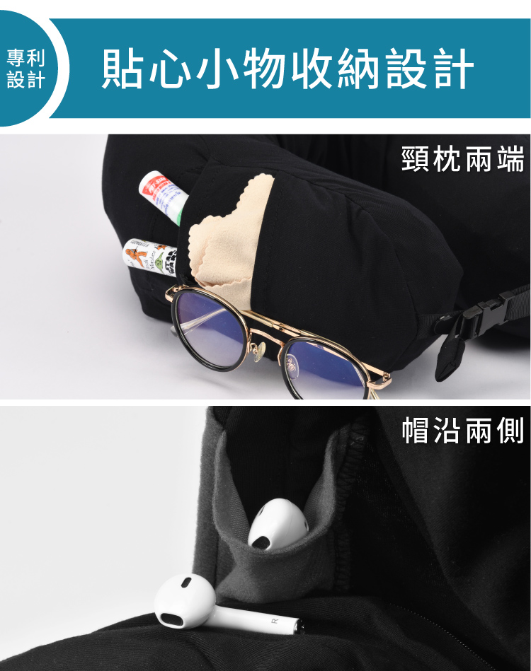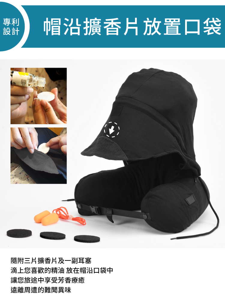 ◆乳膠顆粒枕芯 抗菌防螨 高度支撐頸部◆舒適升級60支紗天絲莫代爾親膚材質枕套,眼鏡、耳機等小物 枕套收納口袋貼心設計◆兩段式連帽設計 遮蓋臉部減少干擾,帽沿擴香片口袋療癒加分 新型專利設計◆帽沿擴香片口袋療癒加分 新型專利設計 ◆眼鏡、耳機等小物 枕套收納口袋貼心設計