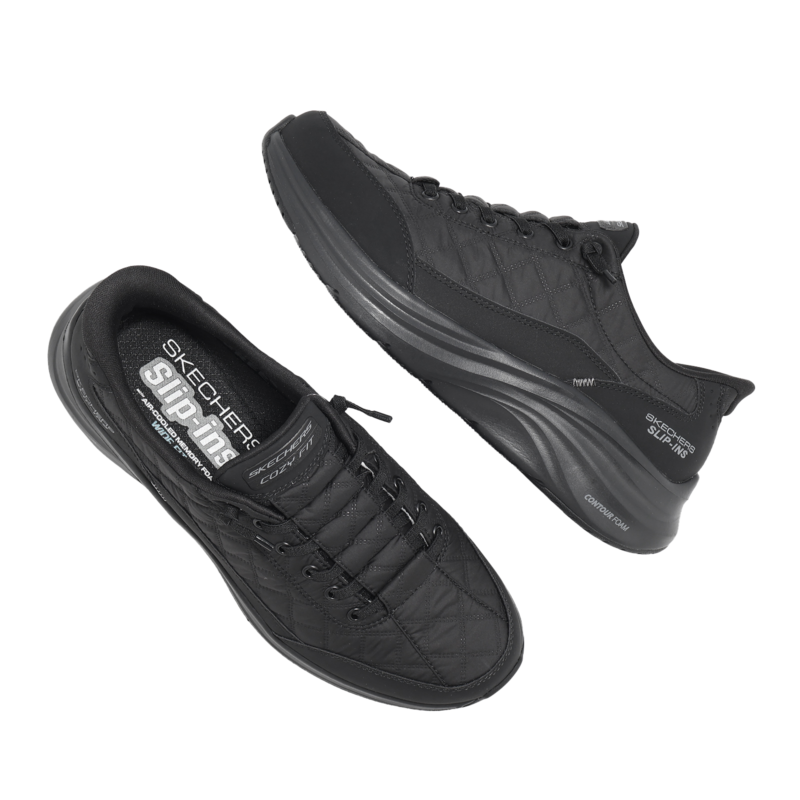 品牌: SKECHERS型號: 232619-WBBK品名: Contour Foam-Cozy Fit Wide Slip-Ins版型: 版型正常*1.CONTOUR FOAM 避震緩衝中底,超級輕量,可適應您腳的形狀,柔軟每一步,讓每一步都更加輕鬆。