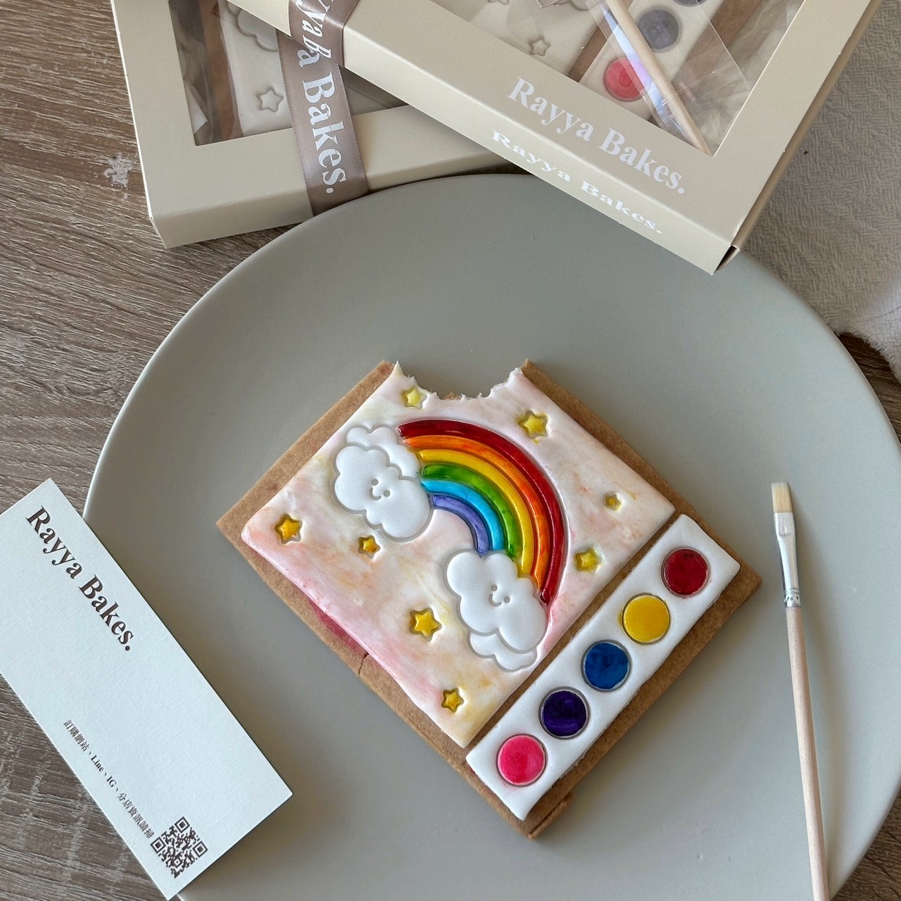 內容物:小畫家翻糖餅乾*1片 食用顏色 畫筆使用方式:畫筆沾飲用水與食用顏色,自行配色畫在白色翻糖上保存方式:常溫24度以下或冷藏保存,四週保存週內食用完畢。餅乾尺寸:12.5*11cm 厚度約1.5cm外盒尺寸:長寬高約17*13*5.5cm