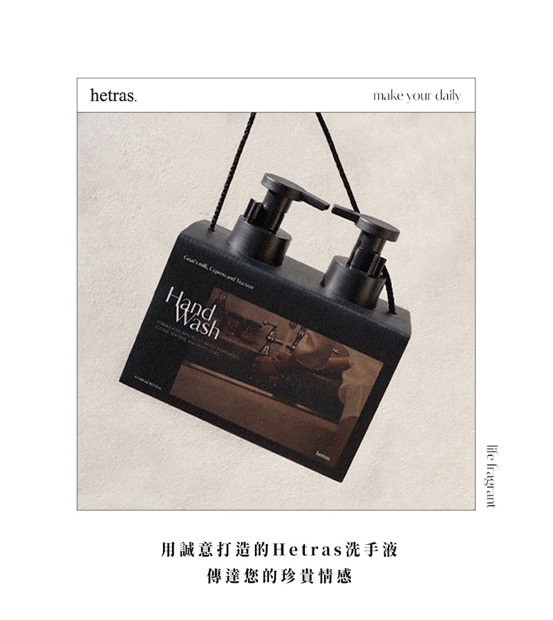 晚安你好由晚安代理的韓國品牌HETRAS來啦在韓國譽有國民香氛,高質感香氣,打造獨特而令人難忘的氛圍!「感受改變空間氛圍的香氣,讓日常生活充滿真心和悸動」忙碌疲憊的現代生活中,透過香氣記錄幸福,成為治愈生活的心靈良藥,讓我們能夠在日常生活中找到一絲寧靜與幸福感。Hetras成為幸福的見證者,喚醒記憶,以香氣呈現所有珍貴的瞬間。香味固然重要,但成分不可忽視不含有害成分,使用精選優質的高級香料,感受不同於其他產品的淡雅香氣