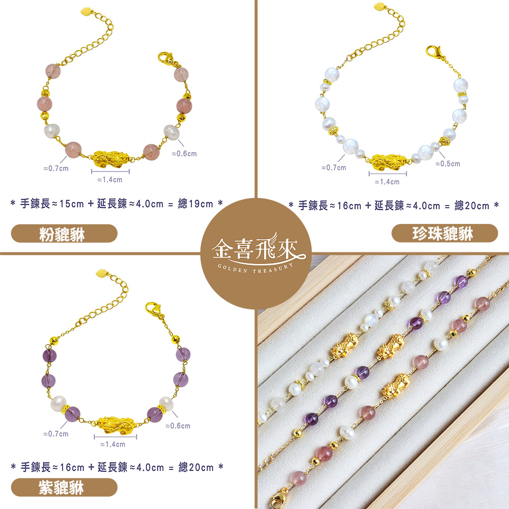 材質:純黃金+925銀鍍金手鍊+天然水晶(優化)+天然珍珠