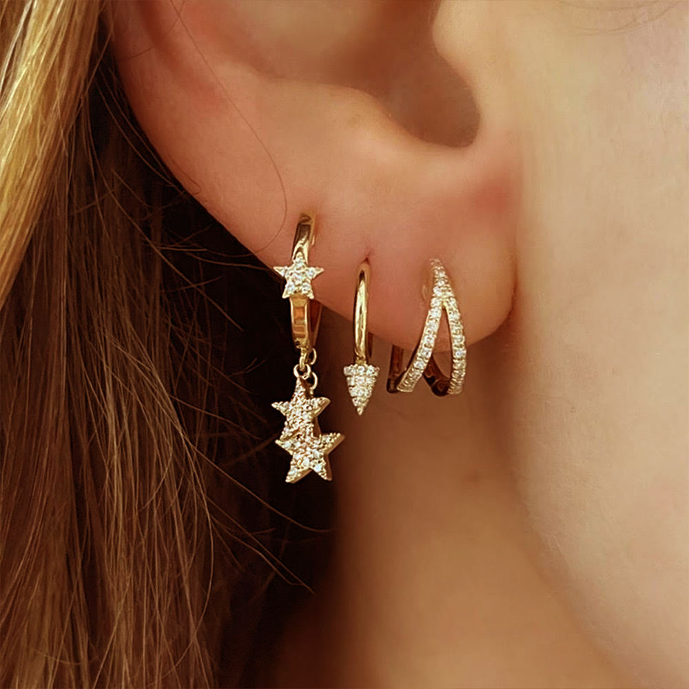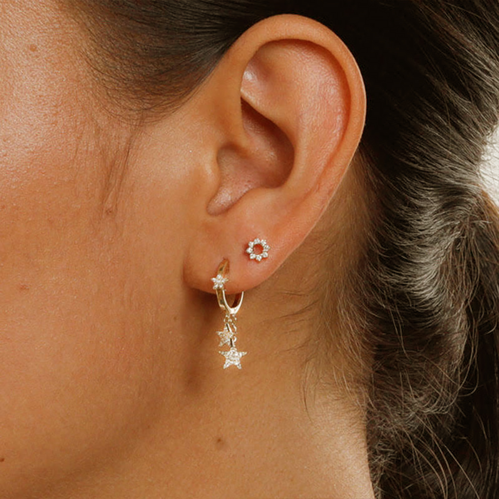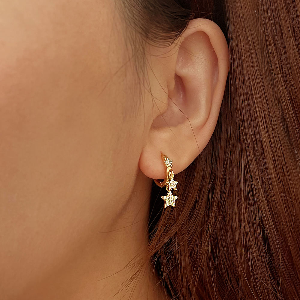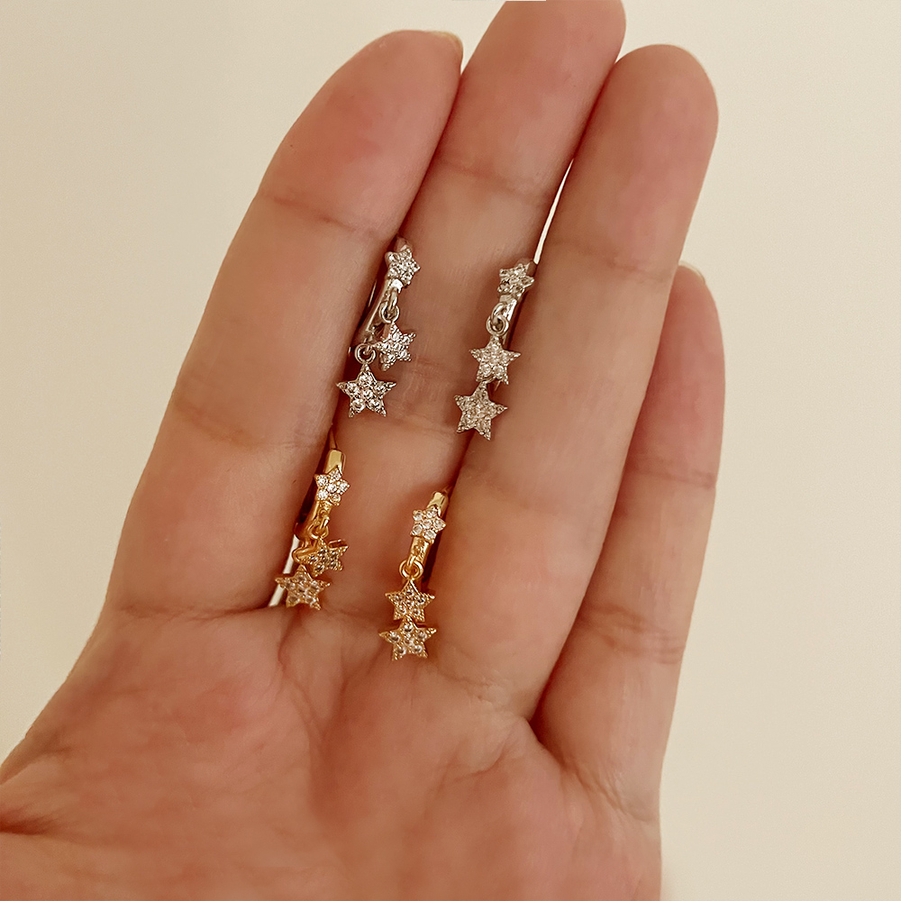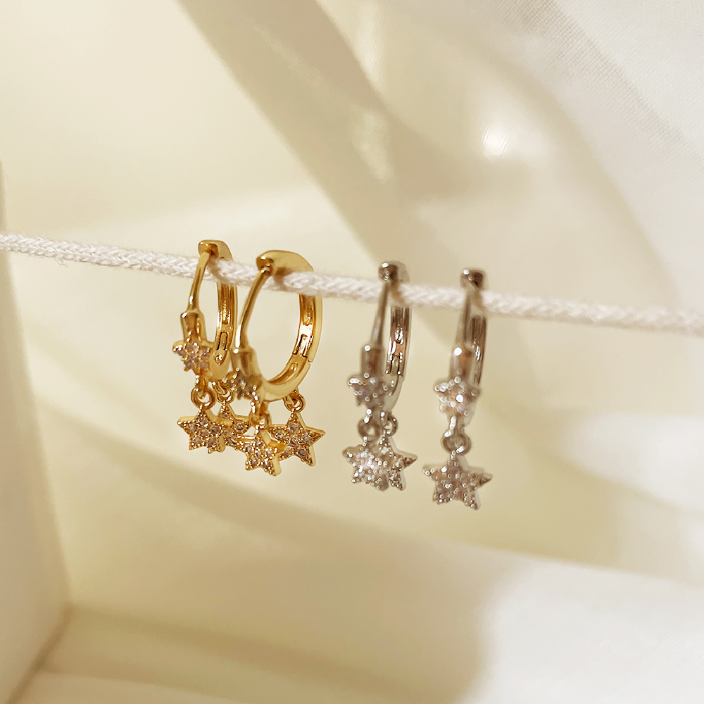 ・名稱:Debby圓圈圓弧星星流蘇 亮鑽銀鍍18K金色女耳環・顏色:銀色/金色・材質:純銀鍍18K金色銀色/仿鑽亮鑽・功能:耳環/禮品・尺寸:直徑約2.3cm
