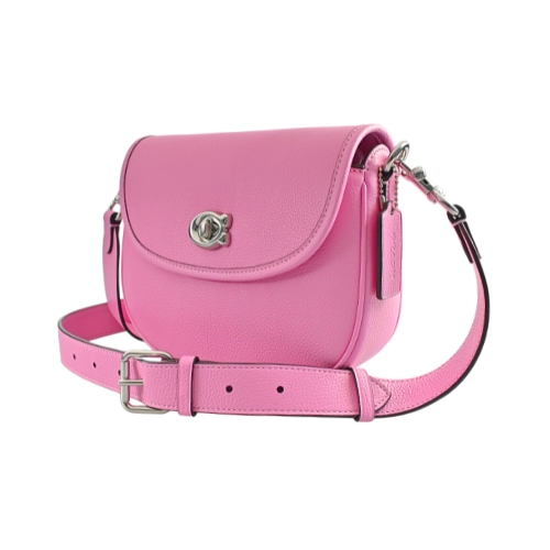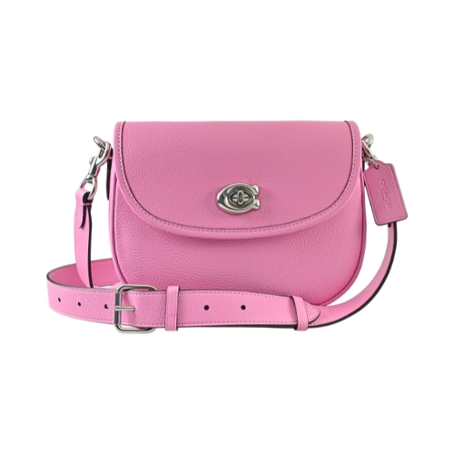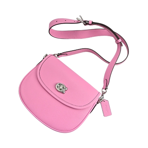 COACH新款WILLOW系列斜背包,圓弧馬鞍包身造型輕巧討喜,搭配質感金屬C字皮帶旋釦翻蓋,立體空間可收納中/短夾、手機、隨身化妝品等必備物,適合外出逛街或休閒聚會背用。(圖片包包內iphone6手機卡片及耳機僅供包款收納空間參考用,不包含在商品內容)★尺寸:寬21.5CM高17CM側邊底寬6CM,活動七段式調整皮革背帶112.5~122.5CM★規格:金屬C字旋釦翻蓋開合,內裡設置前層開口袋及裡層一拉鍊袋、外部背面一開口袋