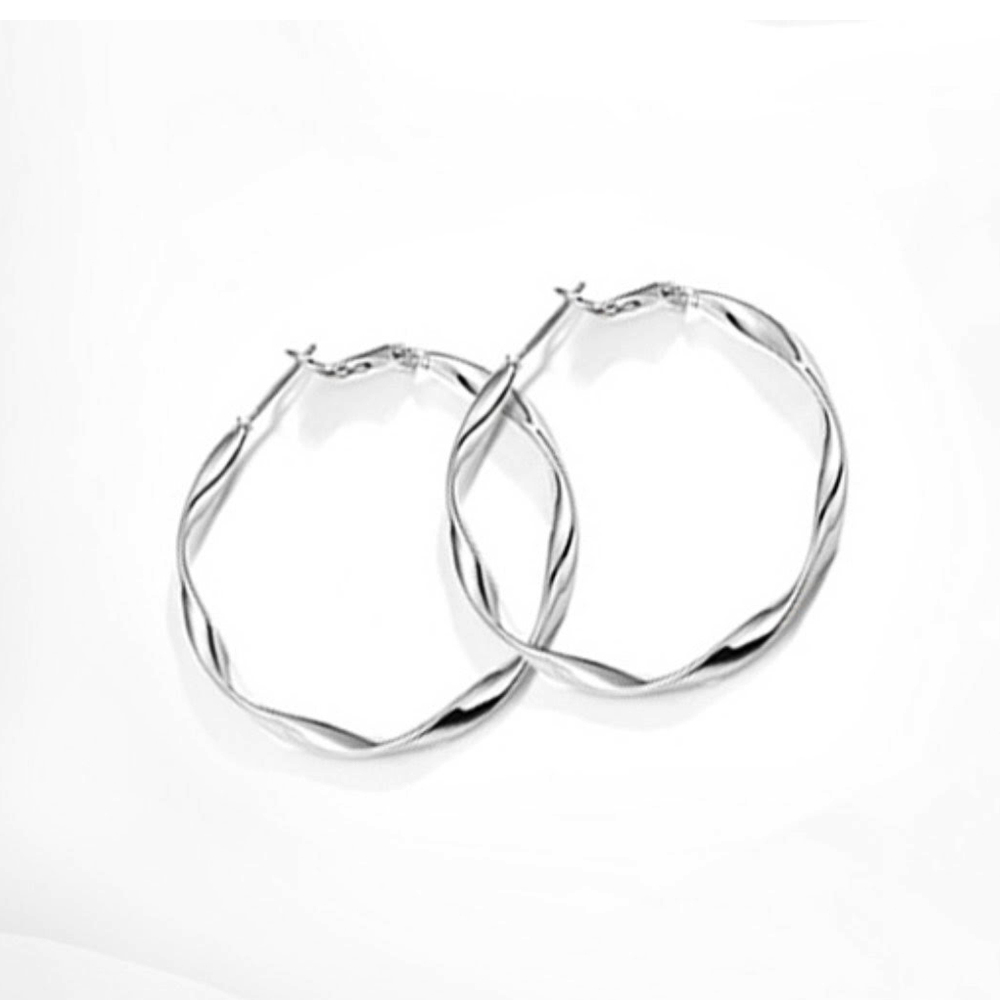 ・名稱:Alberta925純銀鍍14K金色 六次扭轉耀眼圓形女耳環・顏色:銀色/金色・材質:925純銀/鍍14K金色・功能:耳環/禮品・尺寸:直徑約4cm