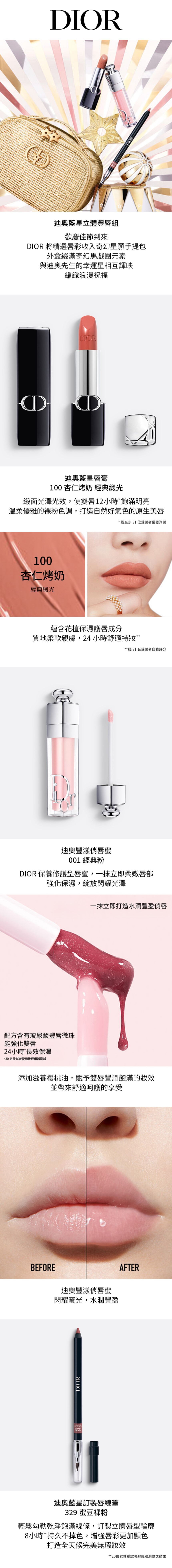 禮盒內含:- 迪奧藍星訂製唇線筆 #329 蜜豆裸粉 (1.2g)輕鬆勾勒乾淨飽滿線條,訂製立體唇型輪廓。8小時¹ 持久不掉色,增強唇彩更加顯色,打造全天候完美無瑕妝效。