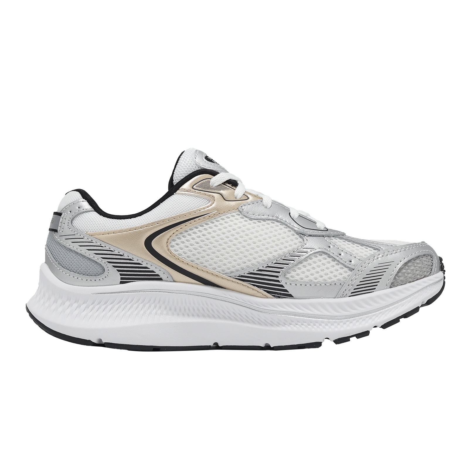 *5.超透氣漸層網布鞋面,提供良好的透氣性,鞋面以搭配銀色皮面裁片加固,強化整體穩定支撐性。