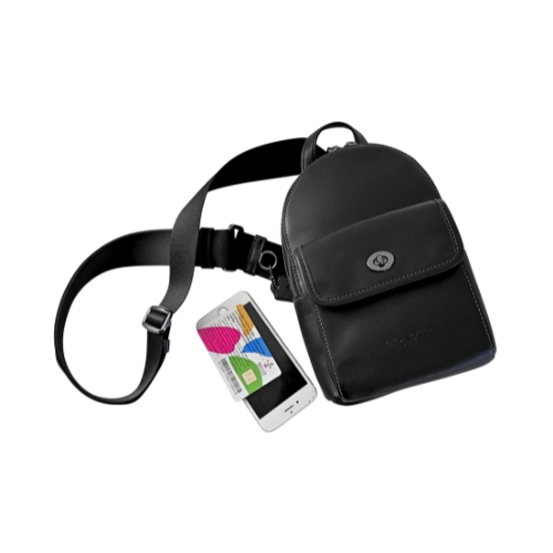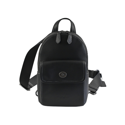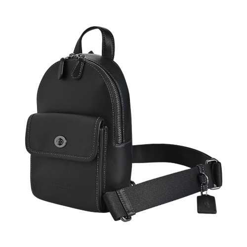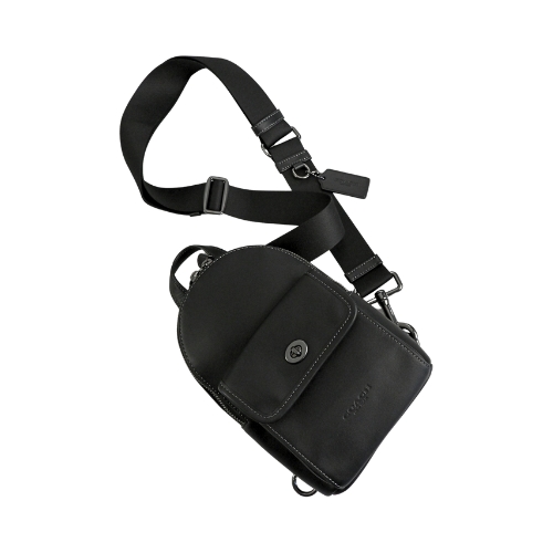 [平輸版] 【COACH】黑色素面皮革前口袋小款單肩胸背斜後背男包 真品平輸 | NearMe | 線上送禮平台『獨家支援 收禮者改選禮物』
