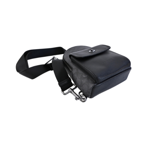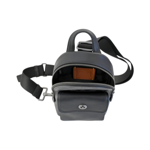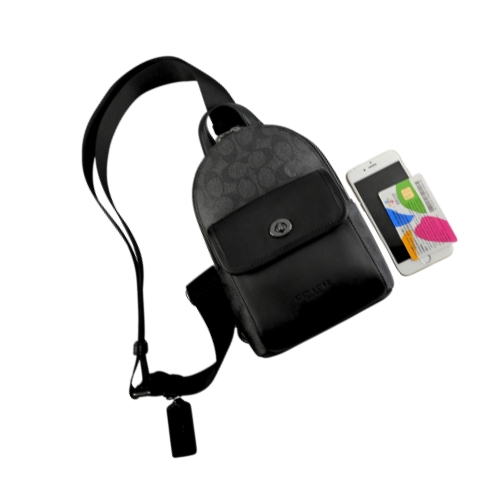 COACH男士小款背包,包身採率性直式並設置正面便利旋扣口袋,弧型拉鍊開合物品易於拿取,單邊可調式背帶休閒百搭。(圖片包包內iphone 6手機及卡片僅供包款收納空間參考用,不包含在商品內容) ★尺寸:寬15CM高23CM側邊寬8CM,固定式背帶拉合調整★規格:弧型拉鍊開合,內無口袋、正面一旋扣口袋