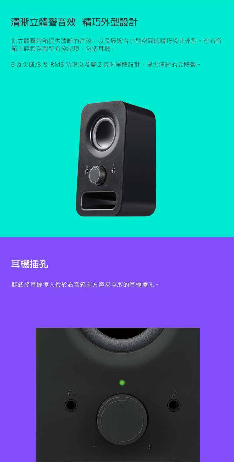 【技術規格】總瓦數 (RMS):3W3.5 公釐輸入埠:2 (最高到 1080p)耳機插孔:1控制:位於右音箱上的電源和音量按鈕