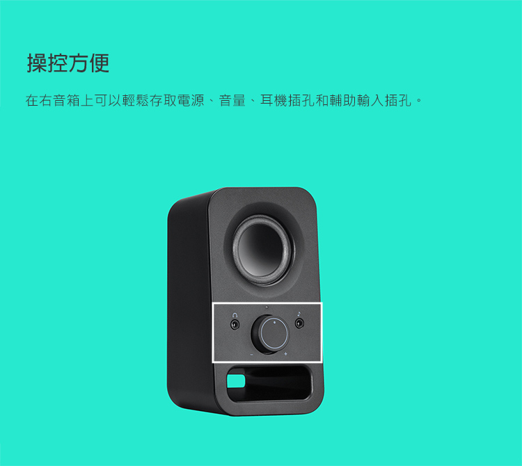 此立體聲音箱提供清晰的聲音,並具有非常適合小型空間的精巧設計。在右音箱上可輕鬆使用包括耳機插孔在內的所有控制功能。