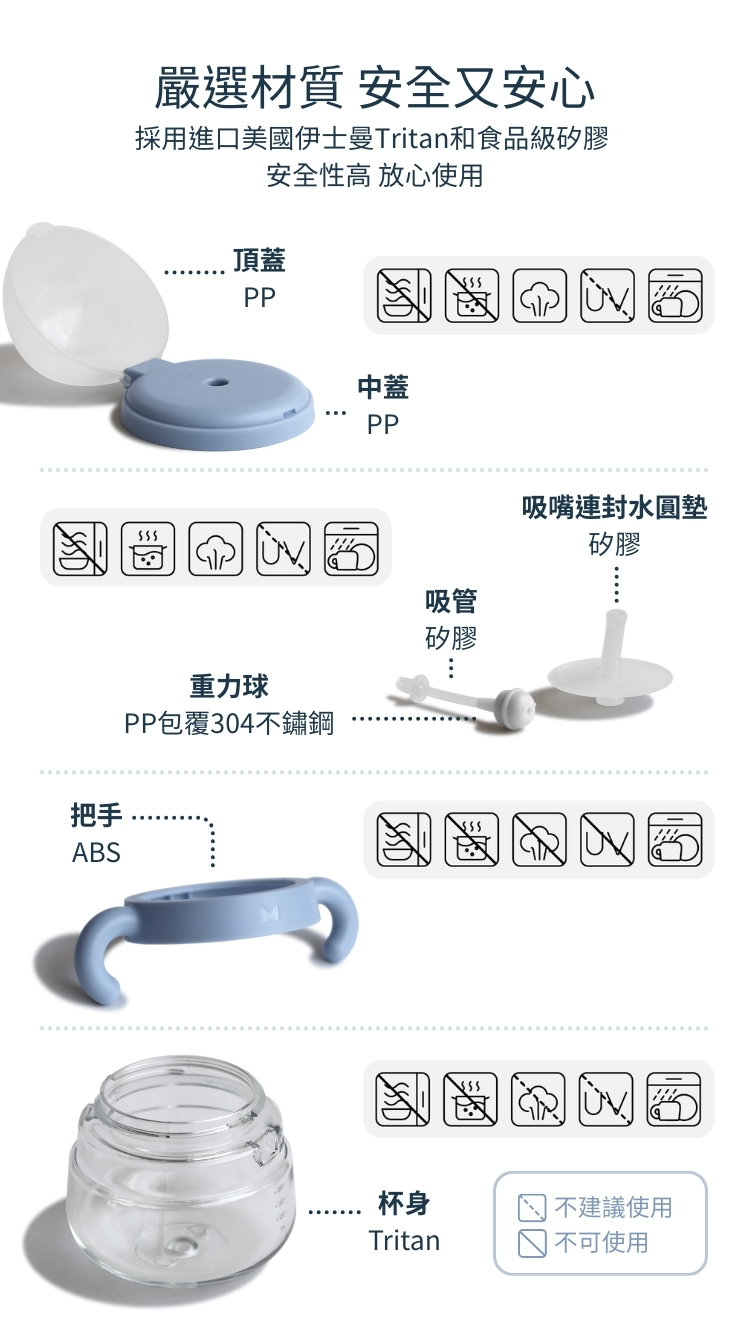 商品規格:◎適用年齡:6m以上◎材質:Tritan、ABS、矽膠、 PP、304不鏽鋼◎數量:1入◎產地:中國