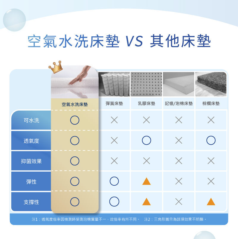 ◎全面支撐,一體成型3cm高度支撐設計◎防焰防螨,具物理防螨特性,隔絕髒污保護床墊◎透氣舒爽,3D空氣纖維內墊,透氣循環不悶熱◎水洗快乾,整件可水洗,布套與床墊分別清洗◎安心入眠,製程不加任何膠或化學藥劑,使用安心